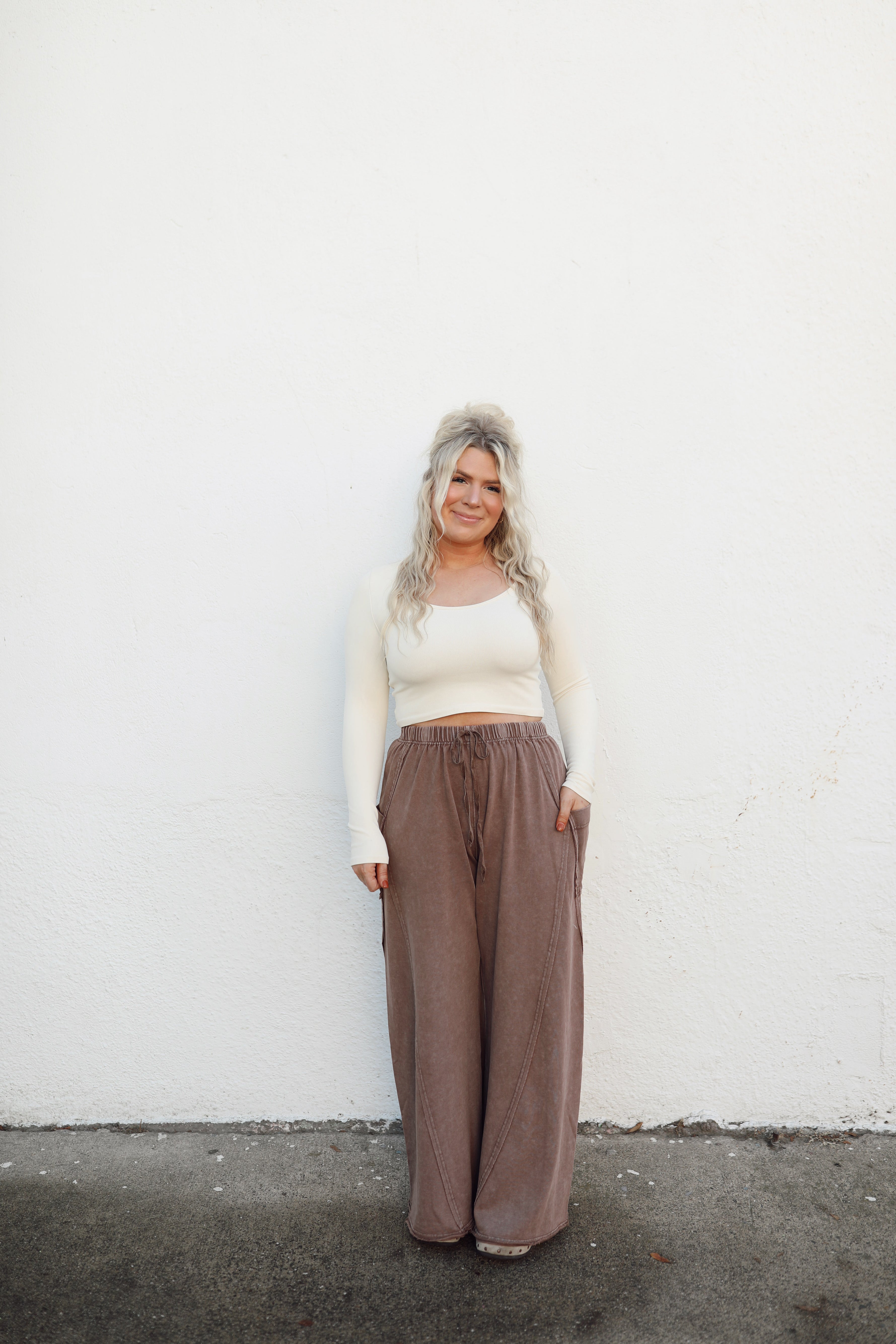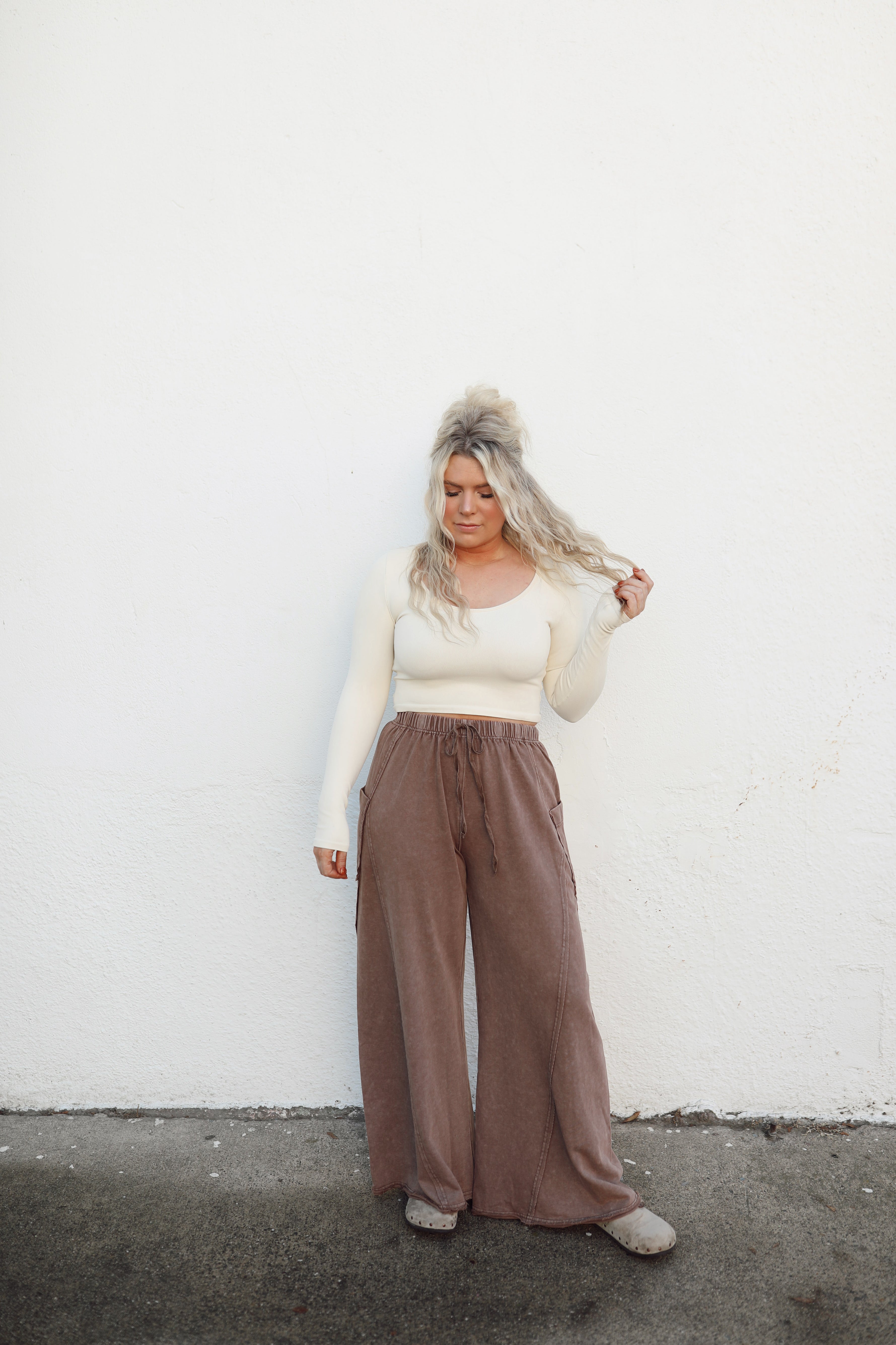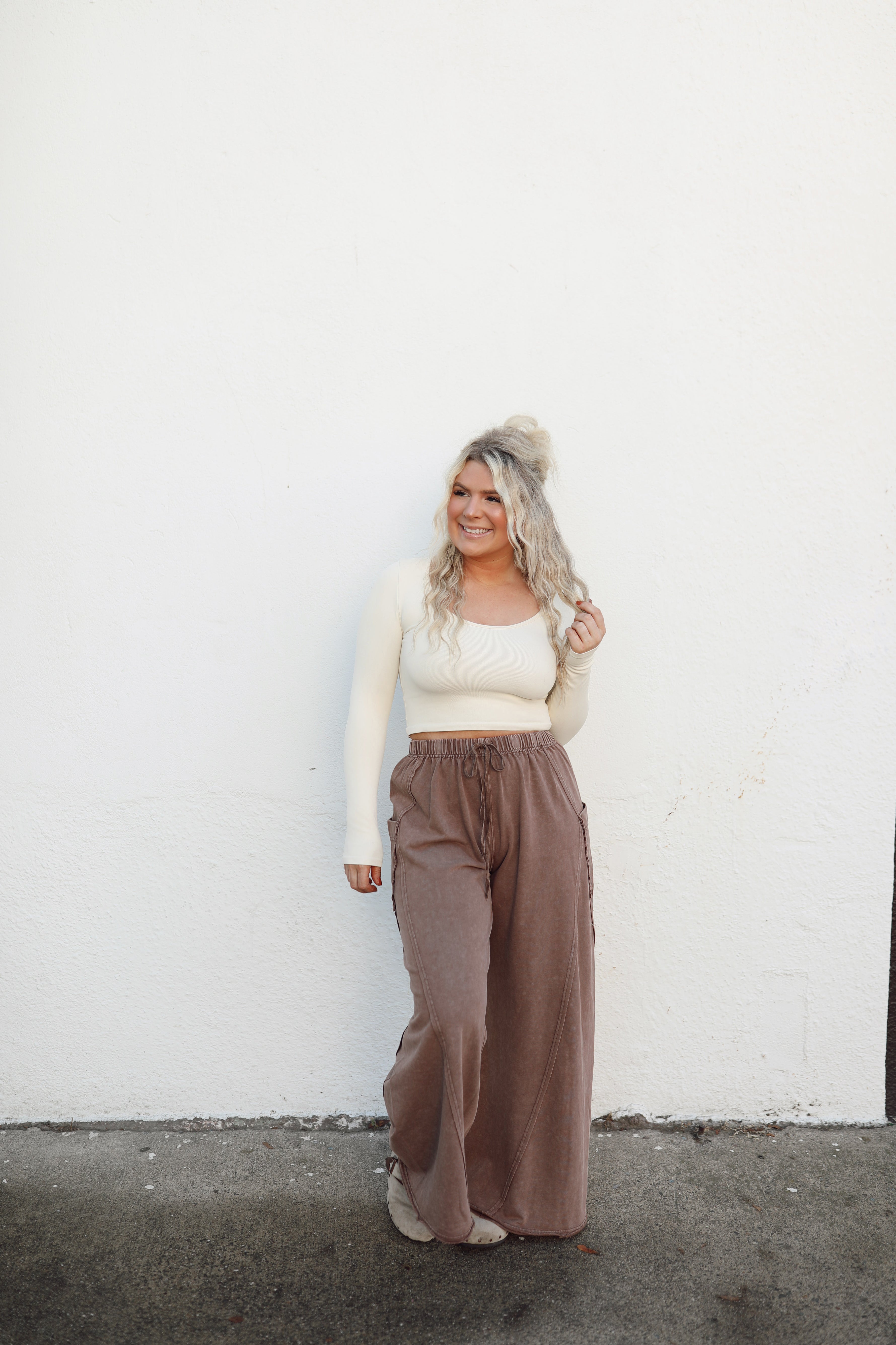 Cotton french terry knit pants with an elastic waist band and drawstring