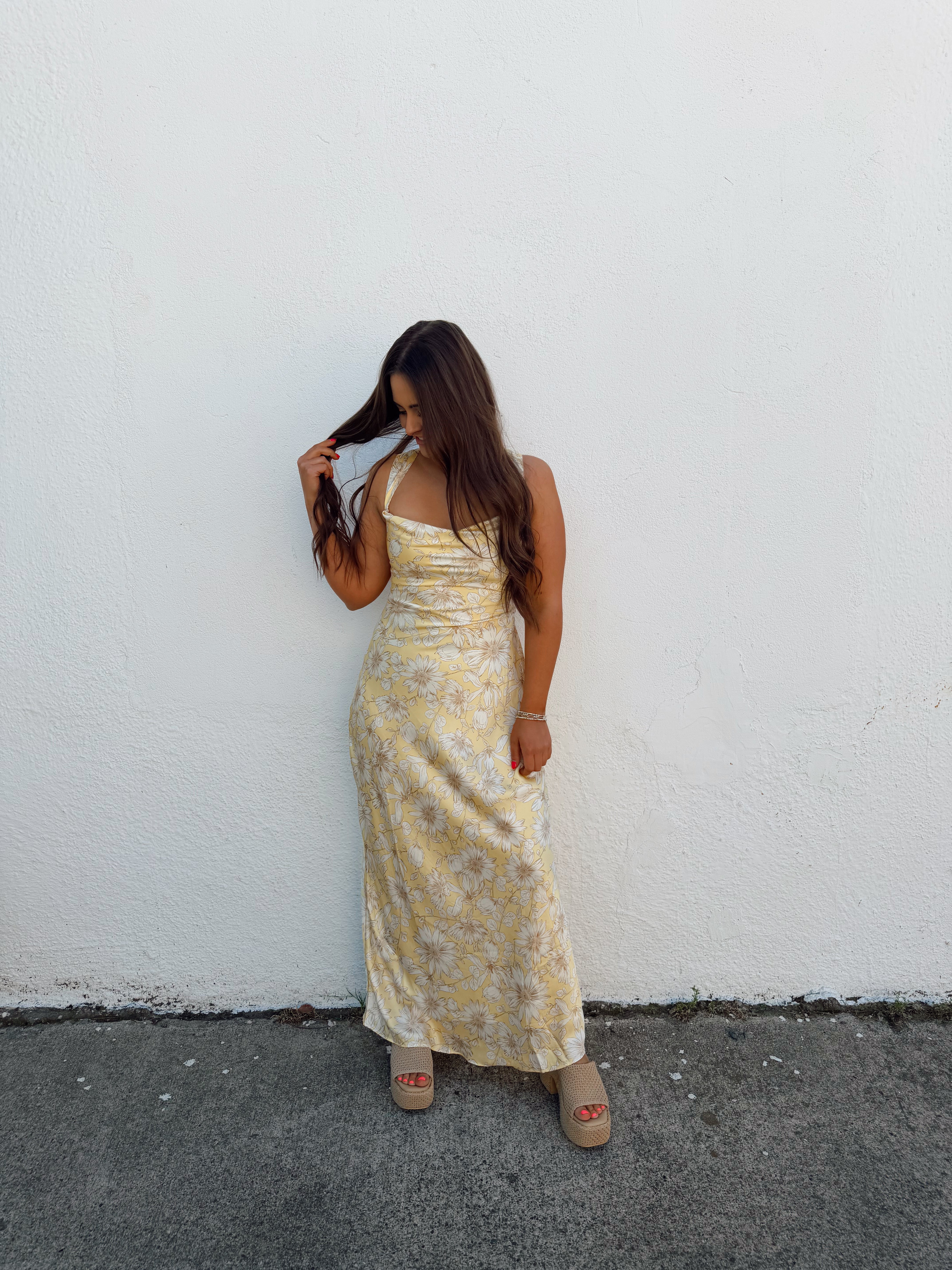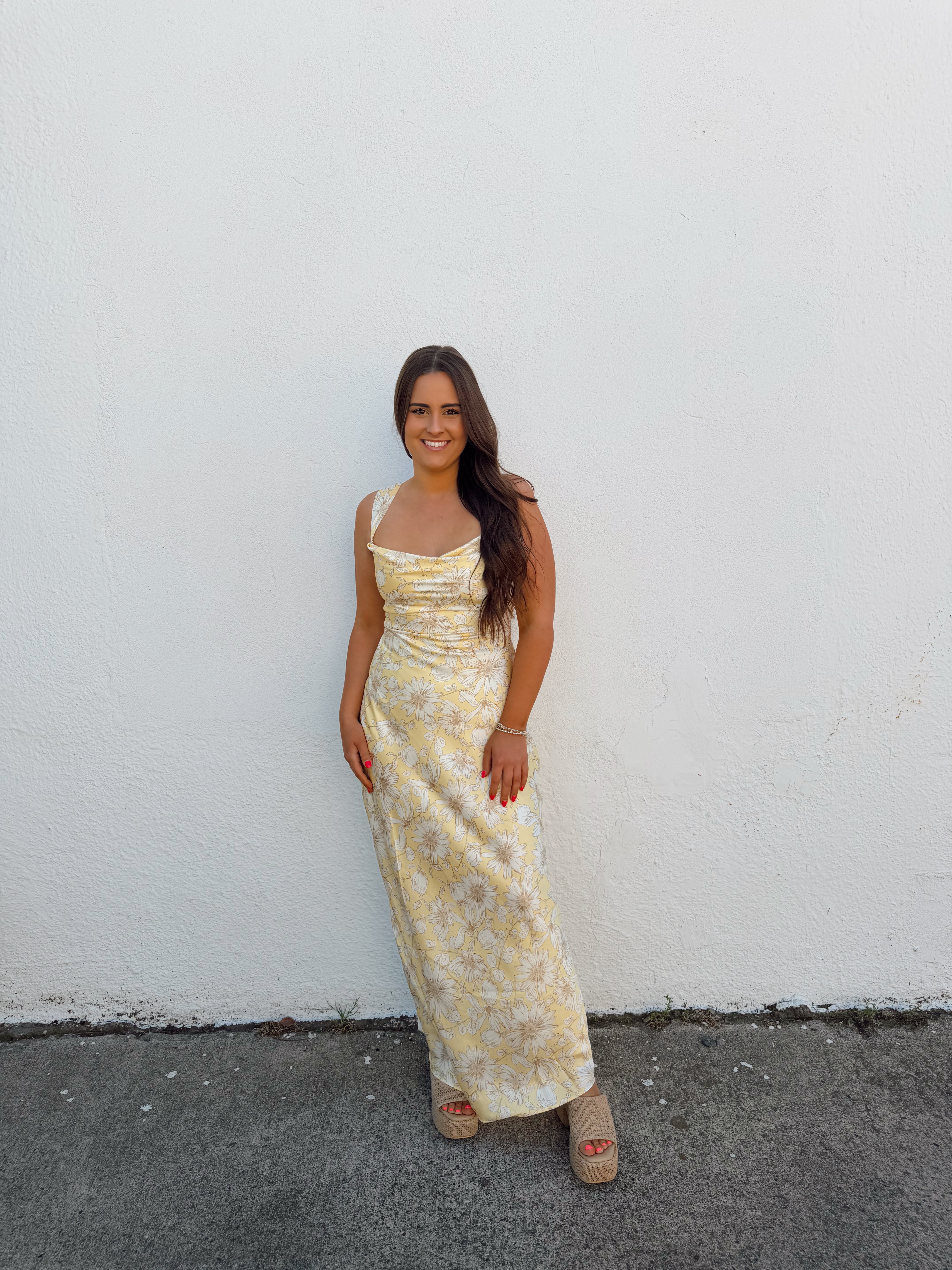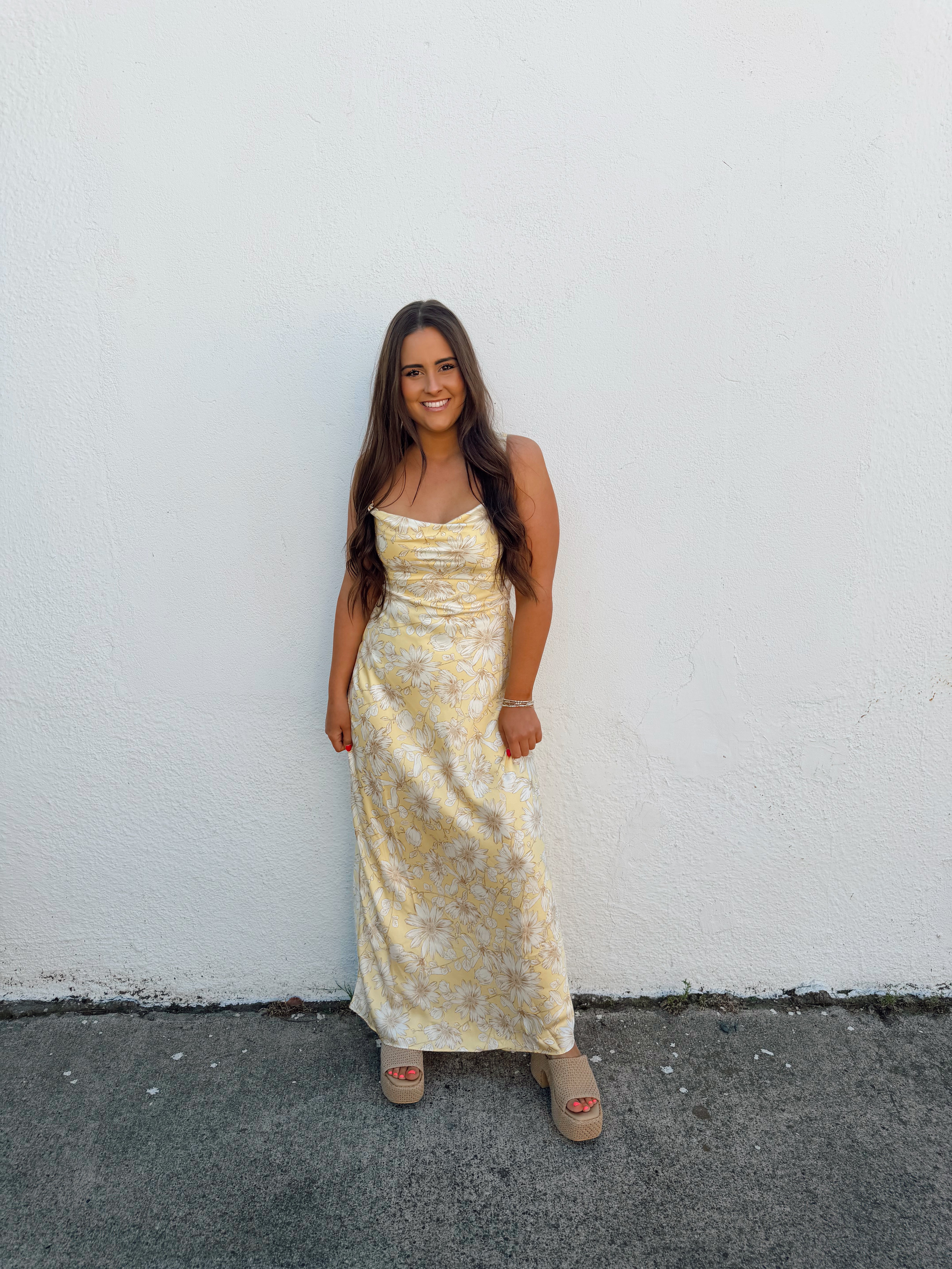 double lined floral satin maxi dress