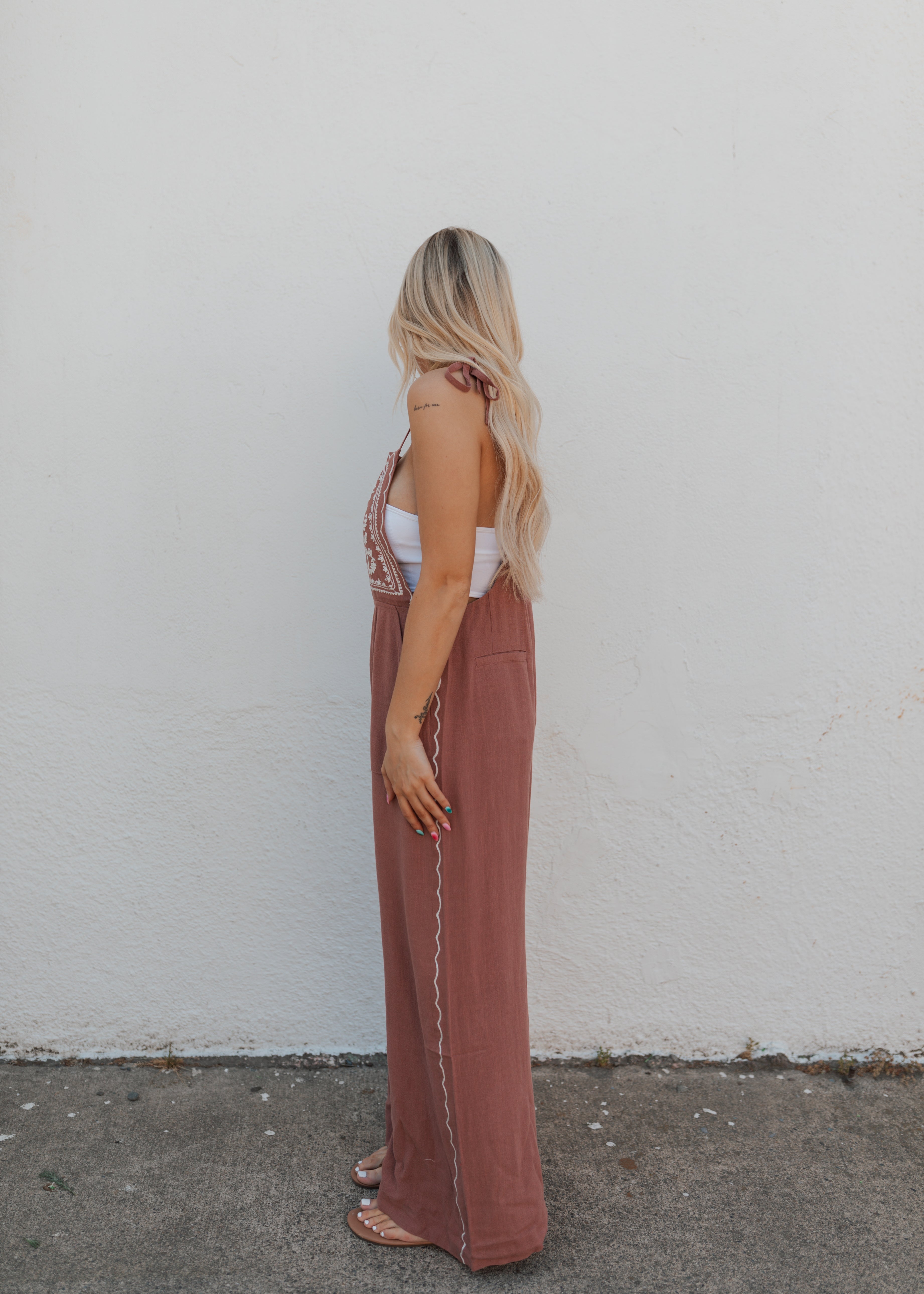 Boho Embroidered Jumpsuit. Adjustable straps