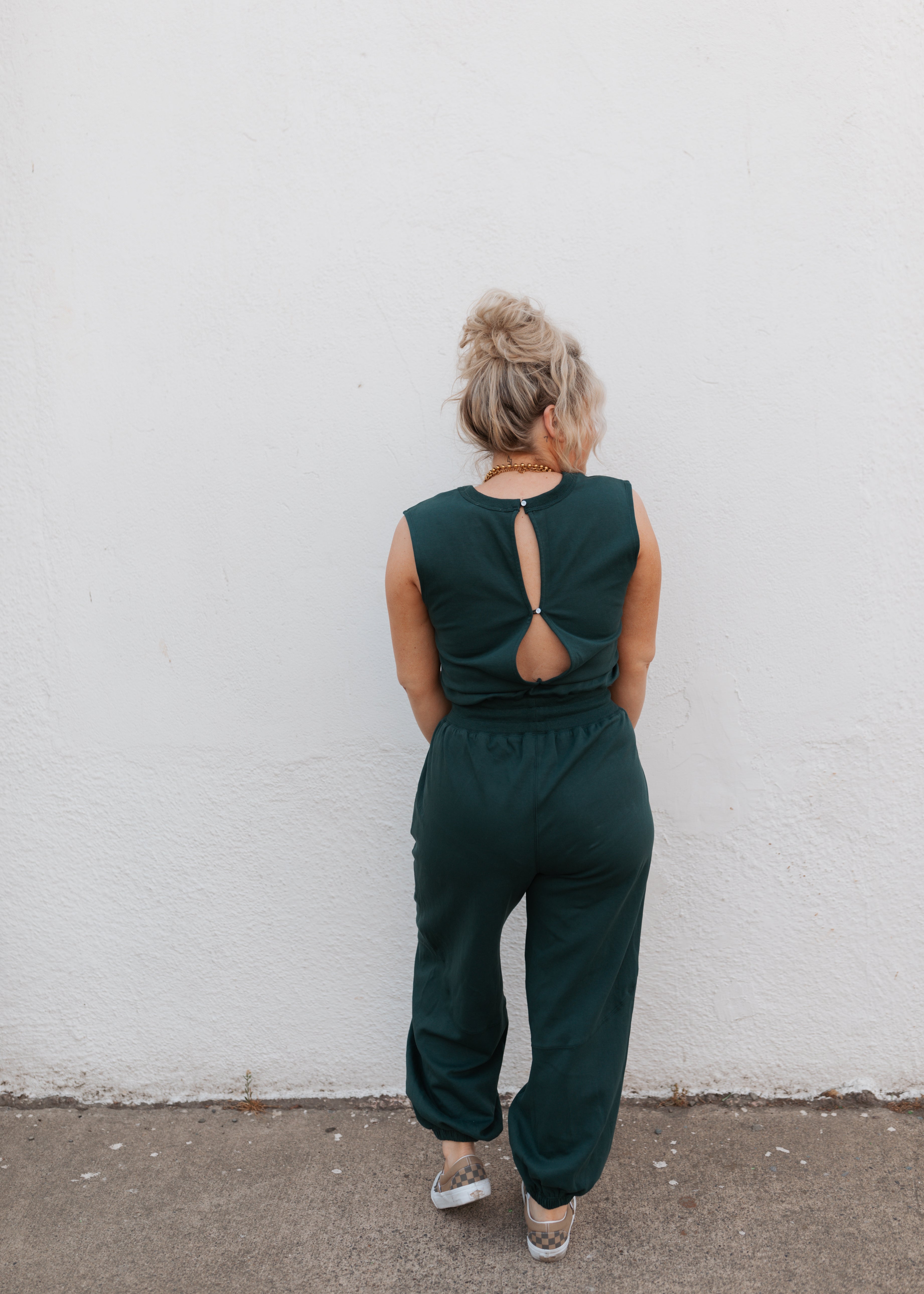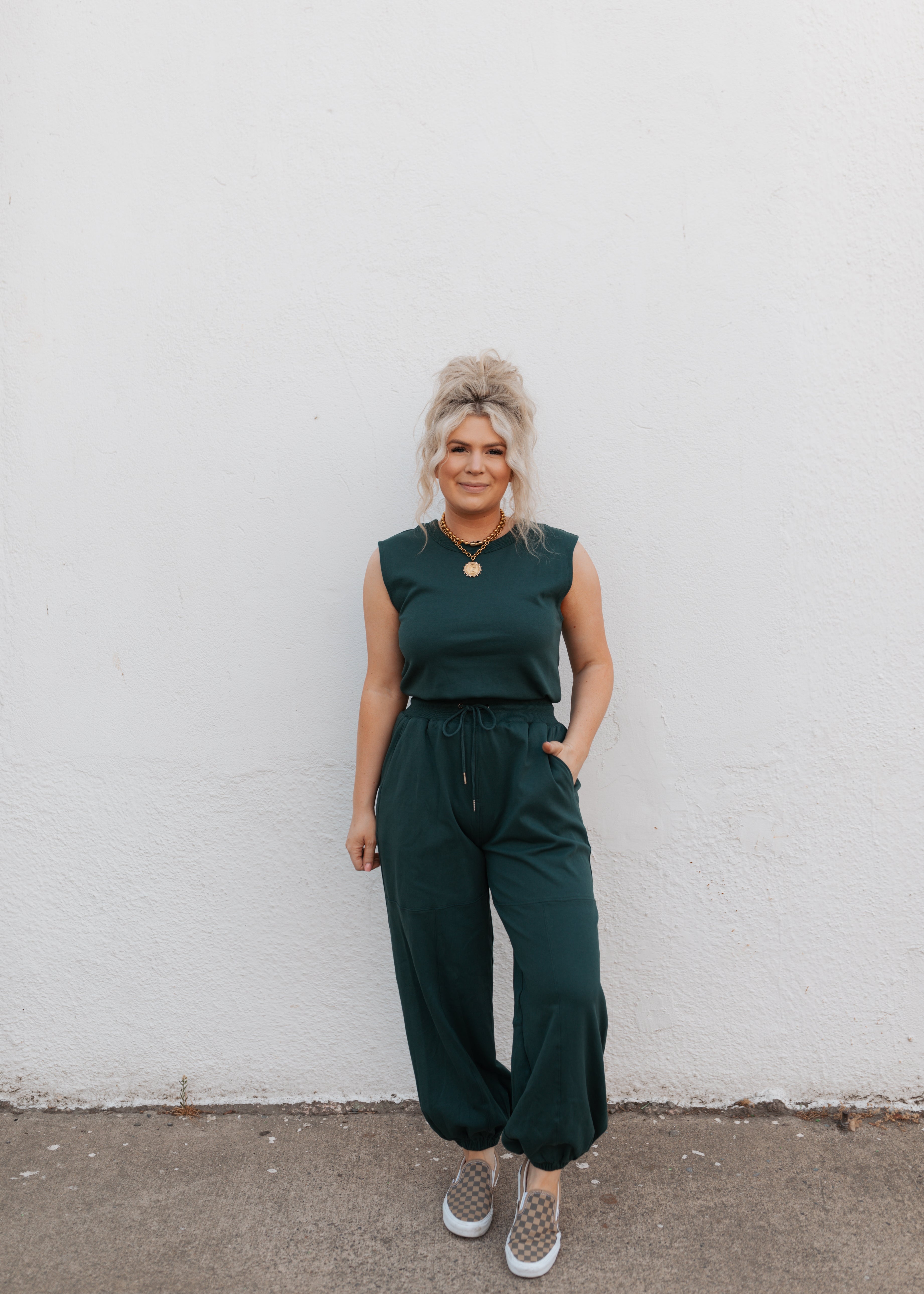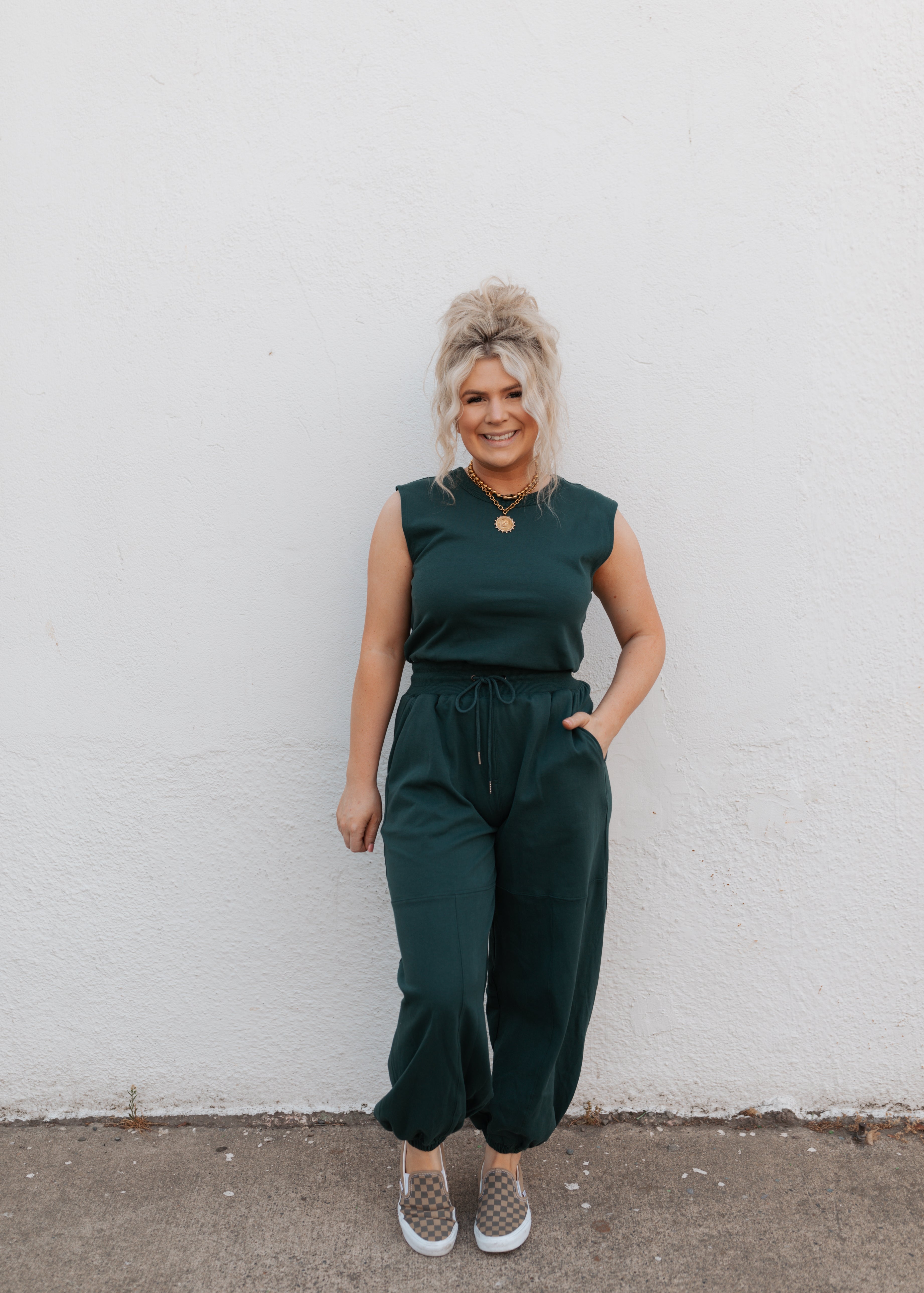 Drawstring Waist Sleeveless Knit Active Jumpsuit