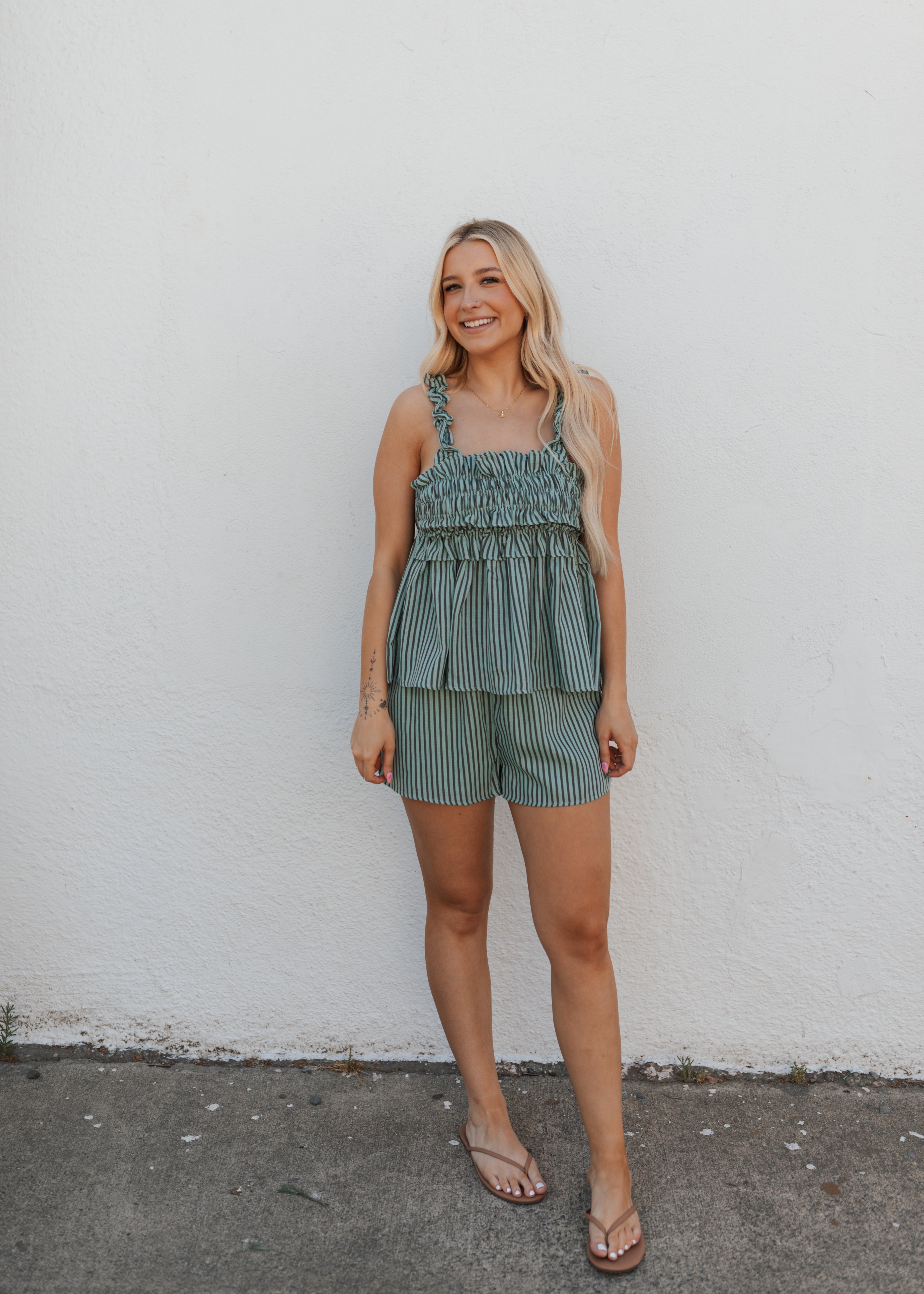 Ruffle top and shorts set, matching shorts with elastic waistband