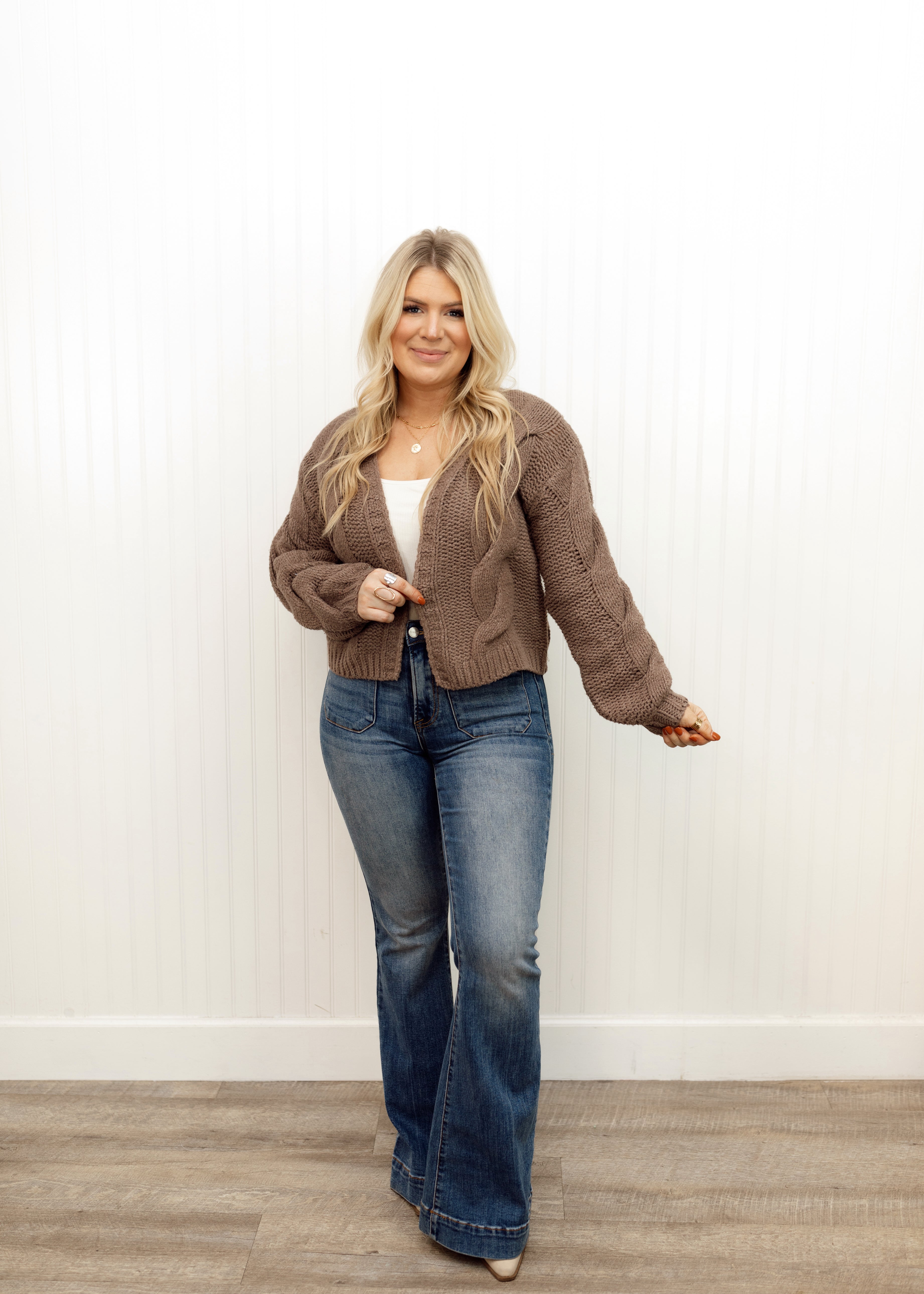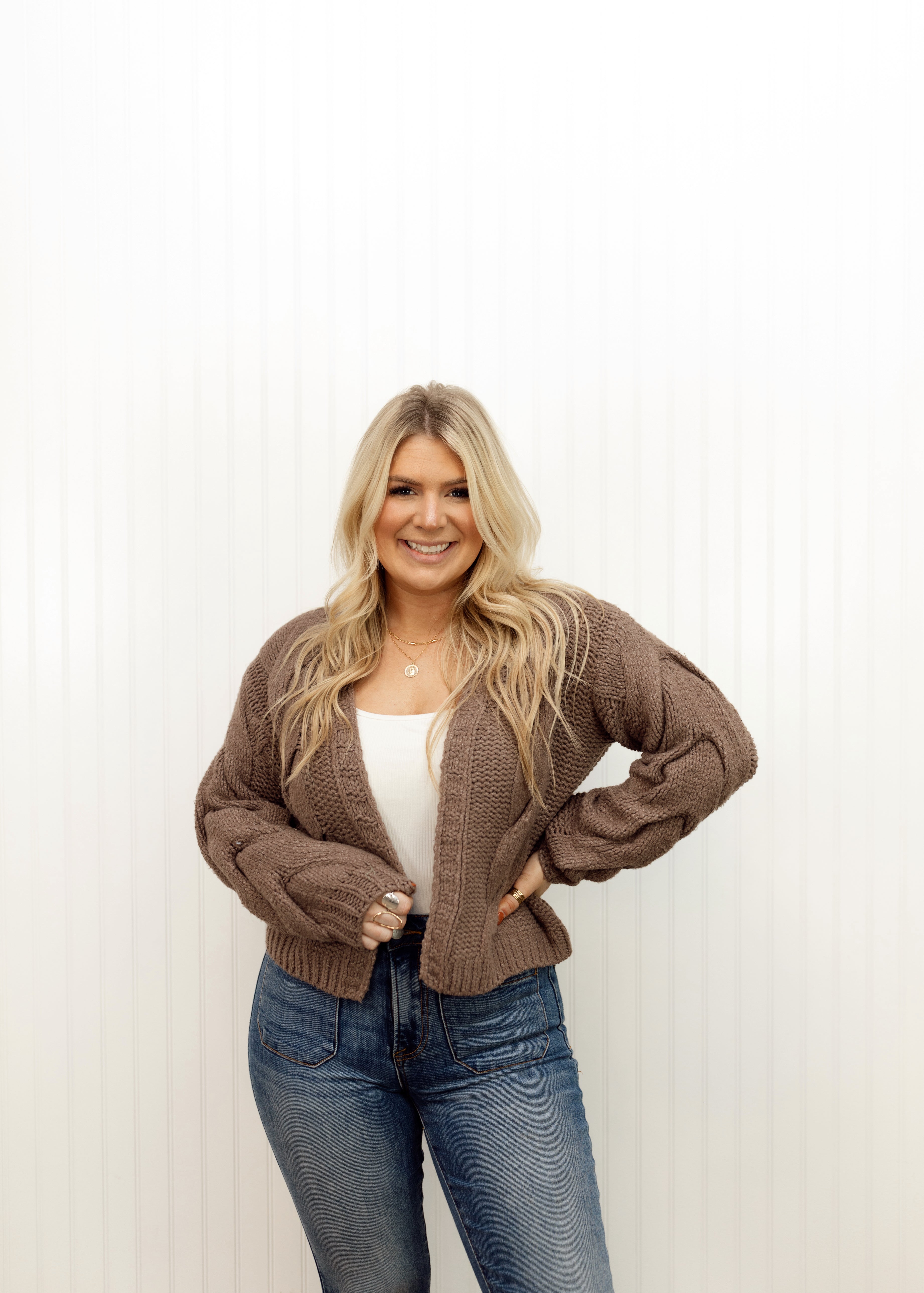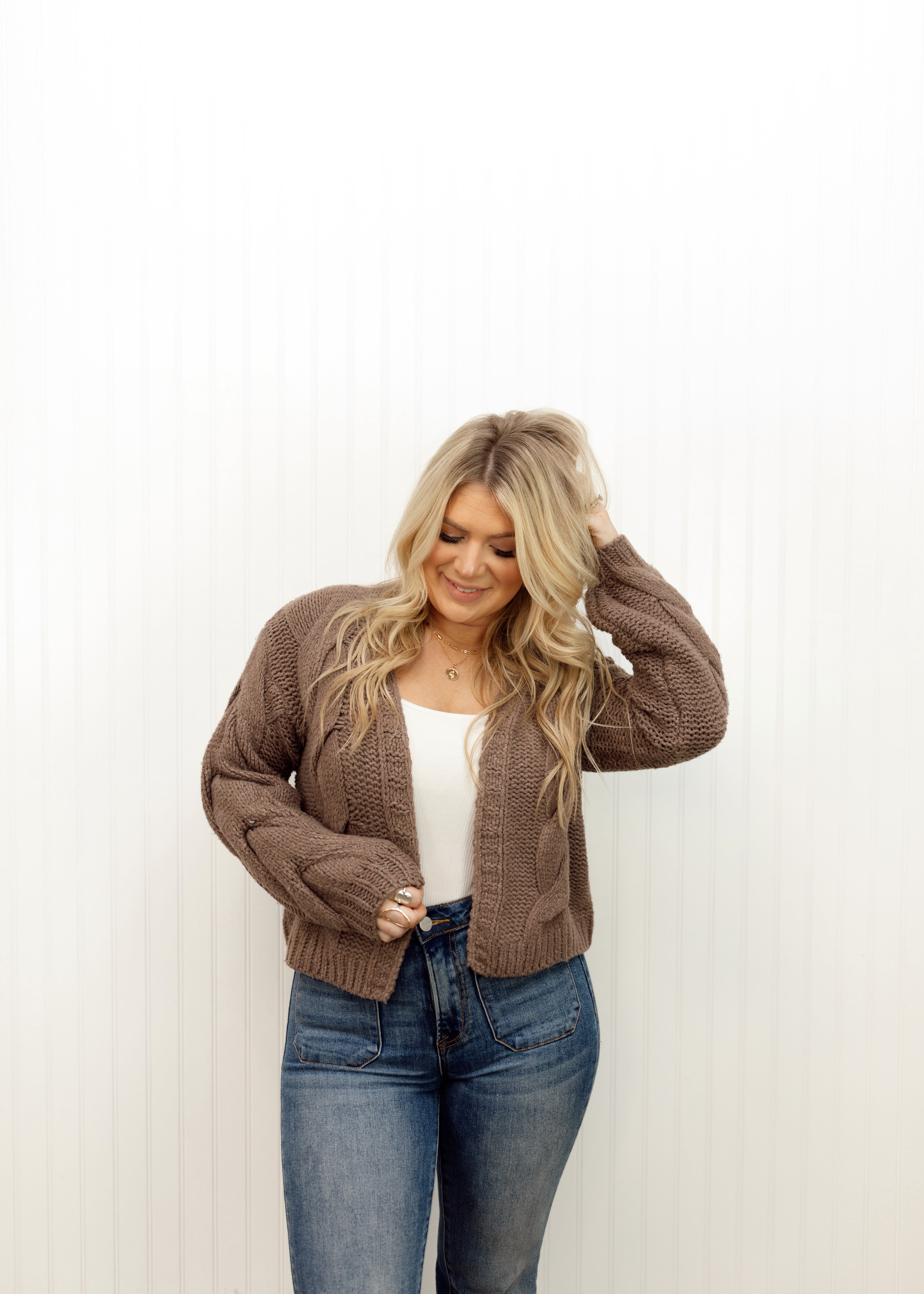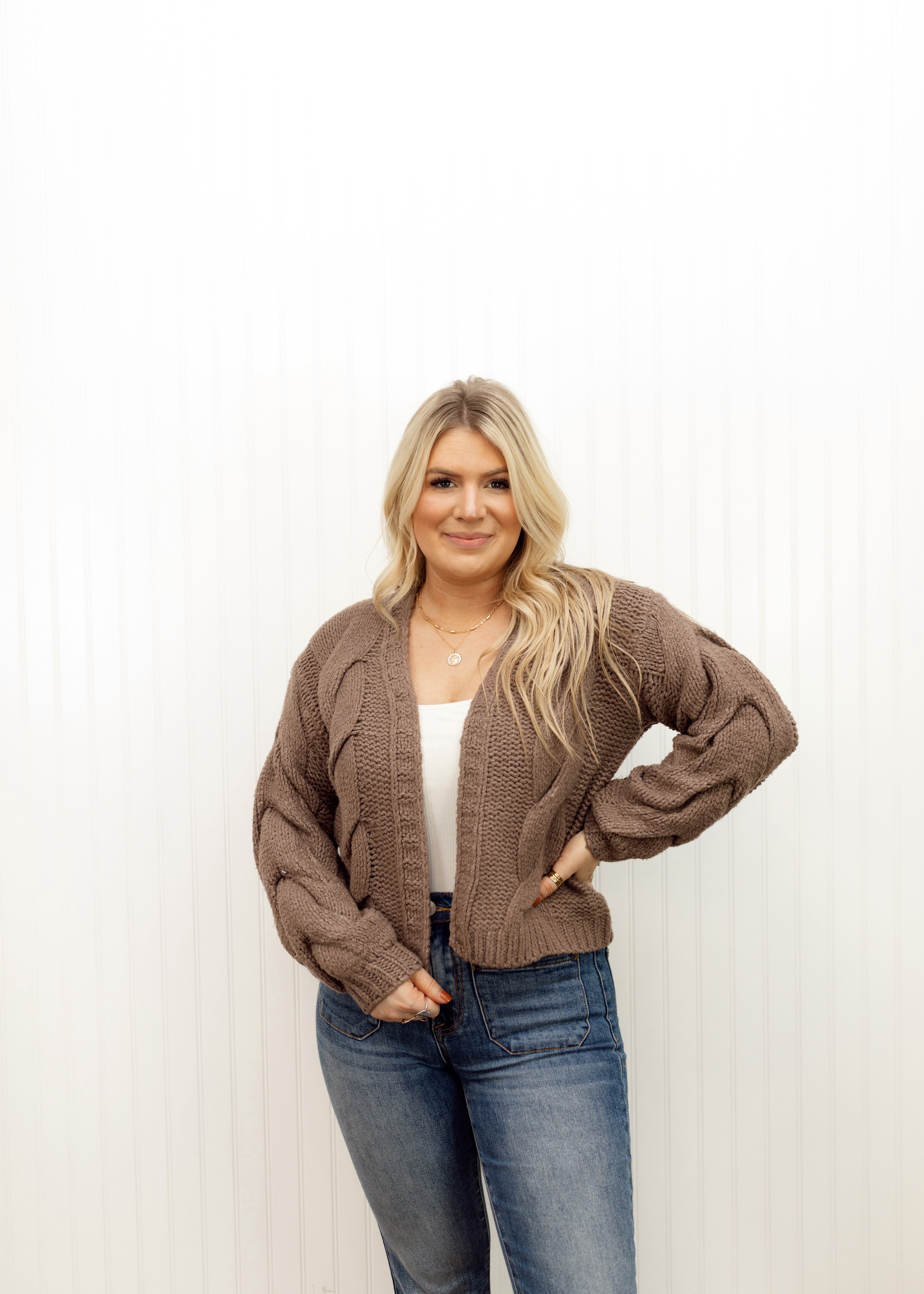 Oversized cable knit open front cardigan