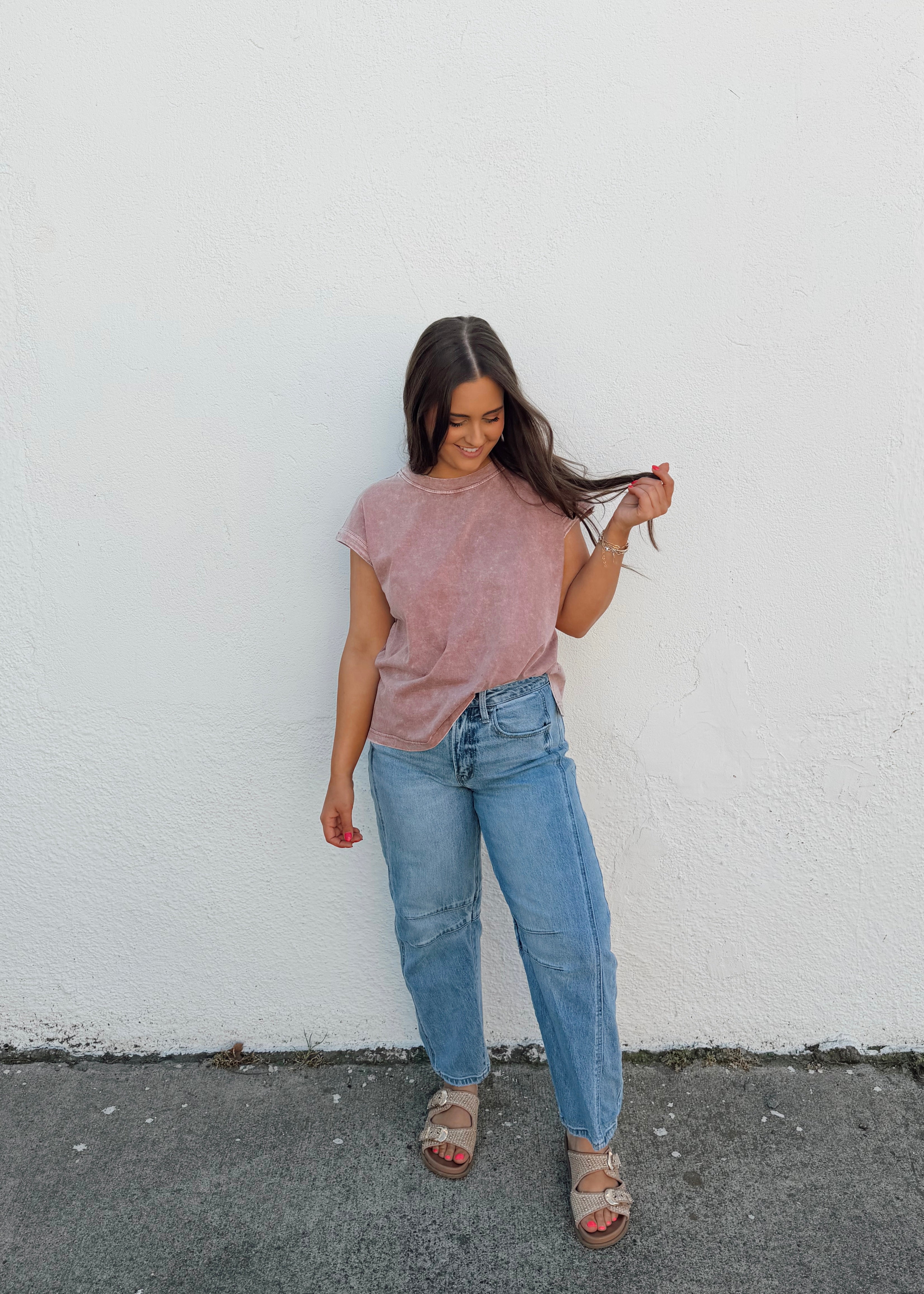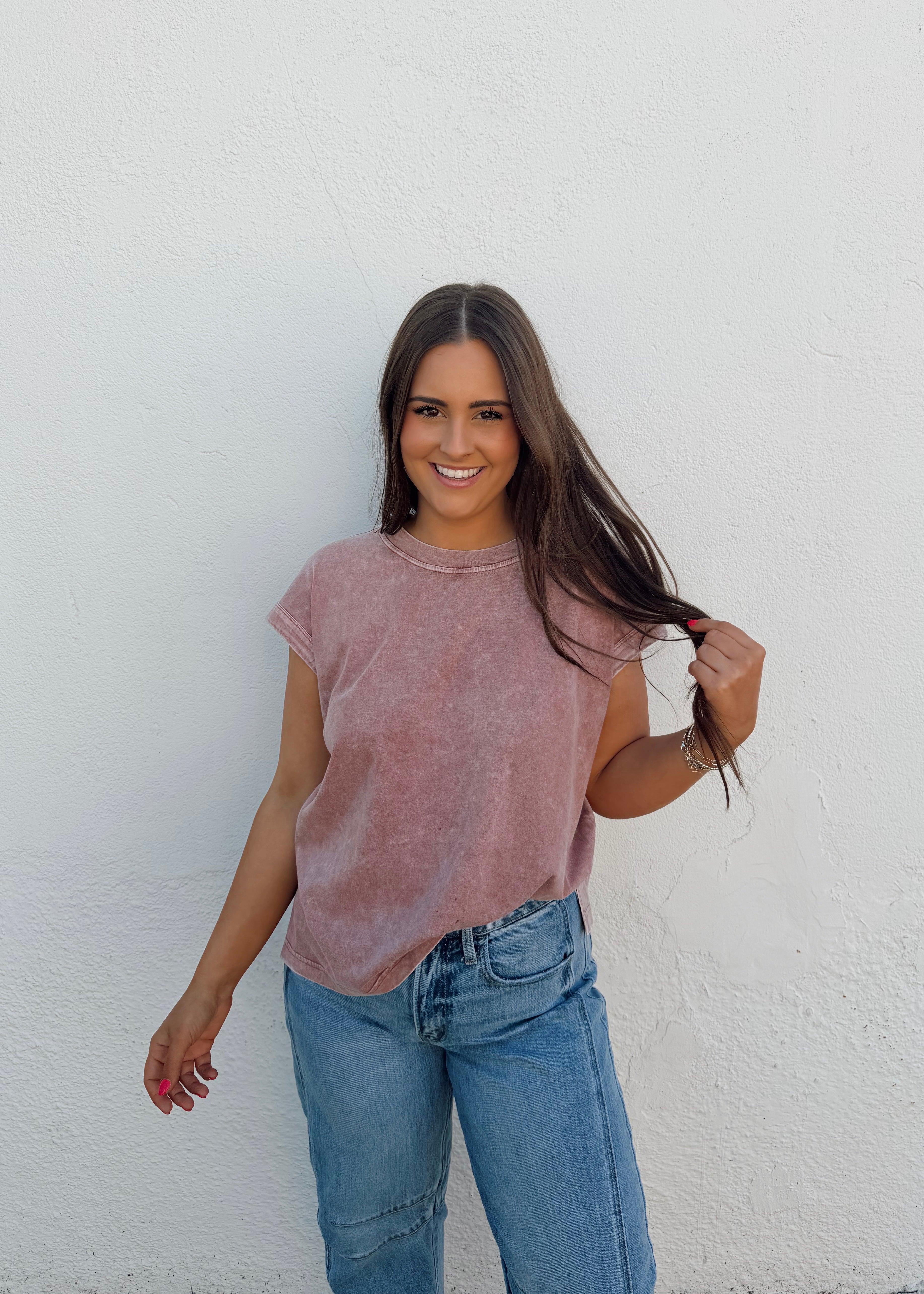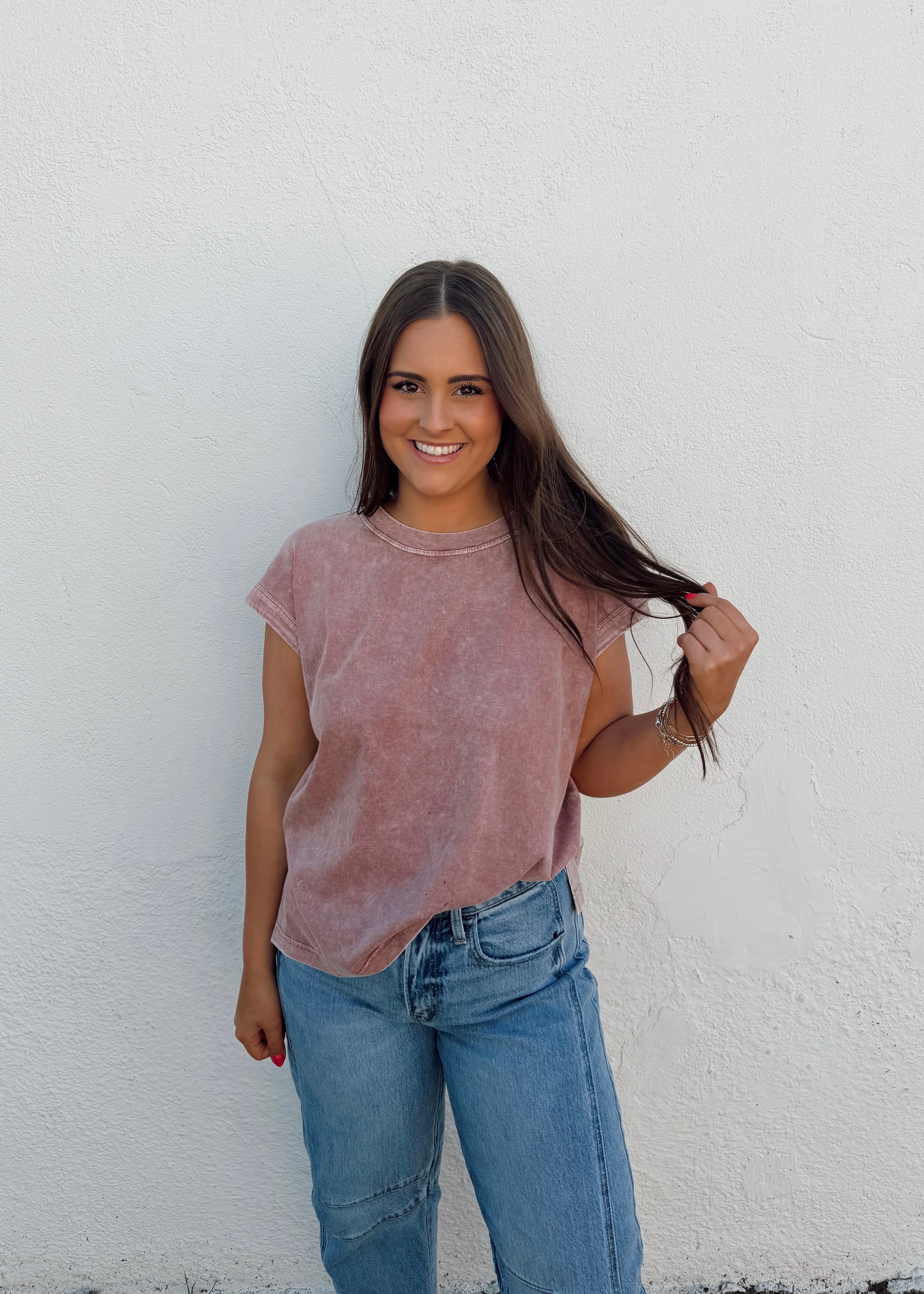 Cassie is in a medium; relaxed fit