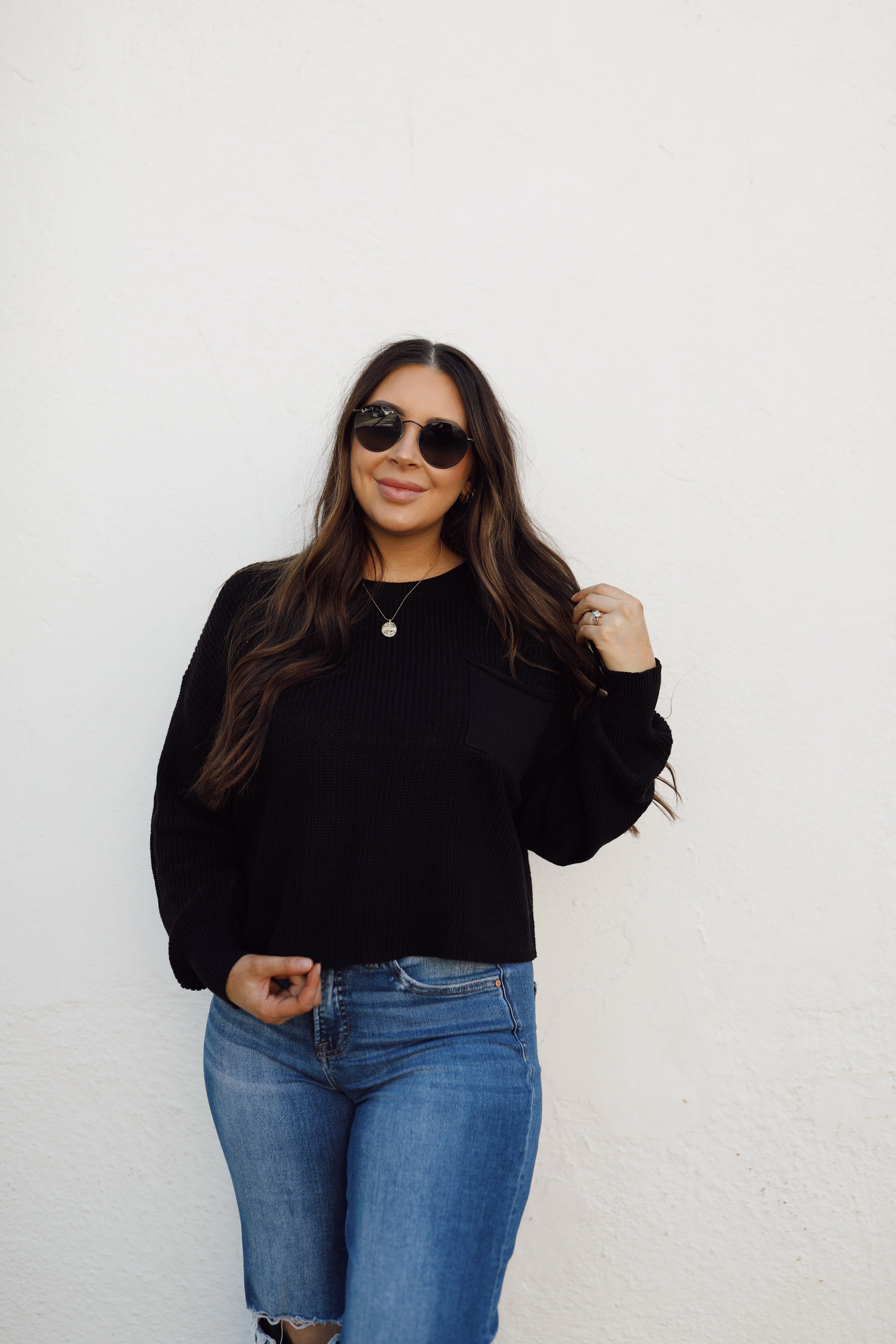 Pocket detail crewneck sweater