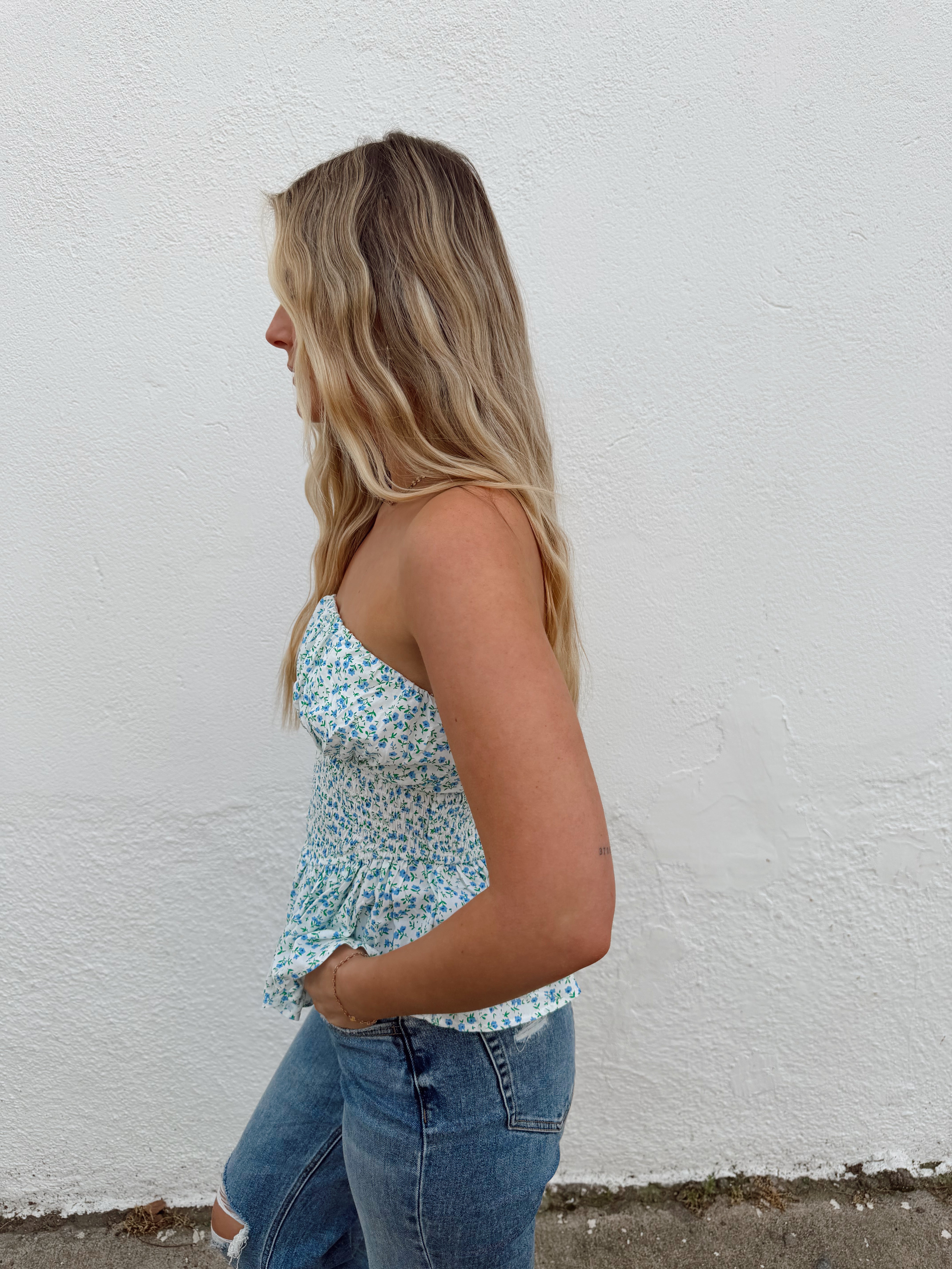 Maggie Floral Strapless Top - Blue