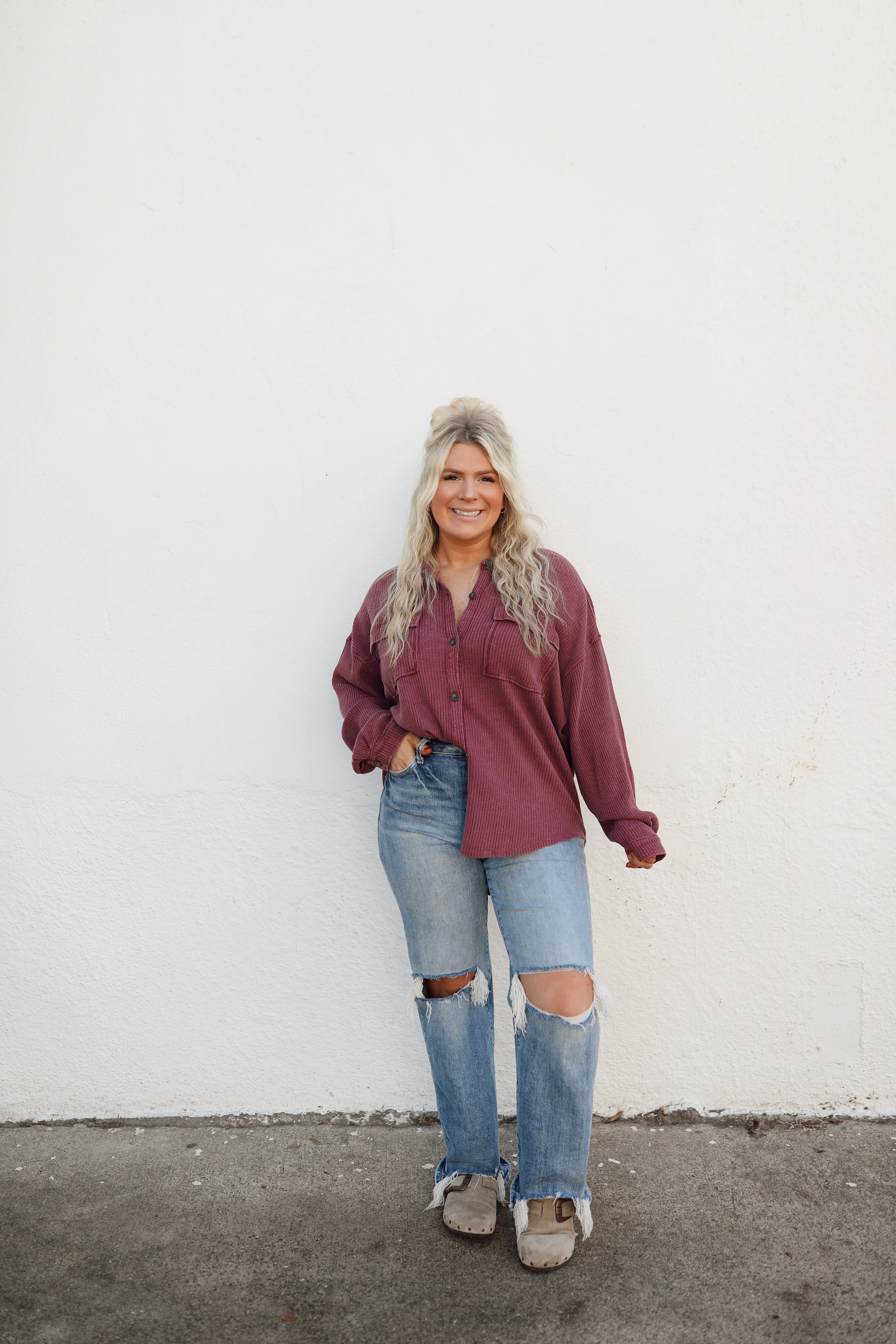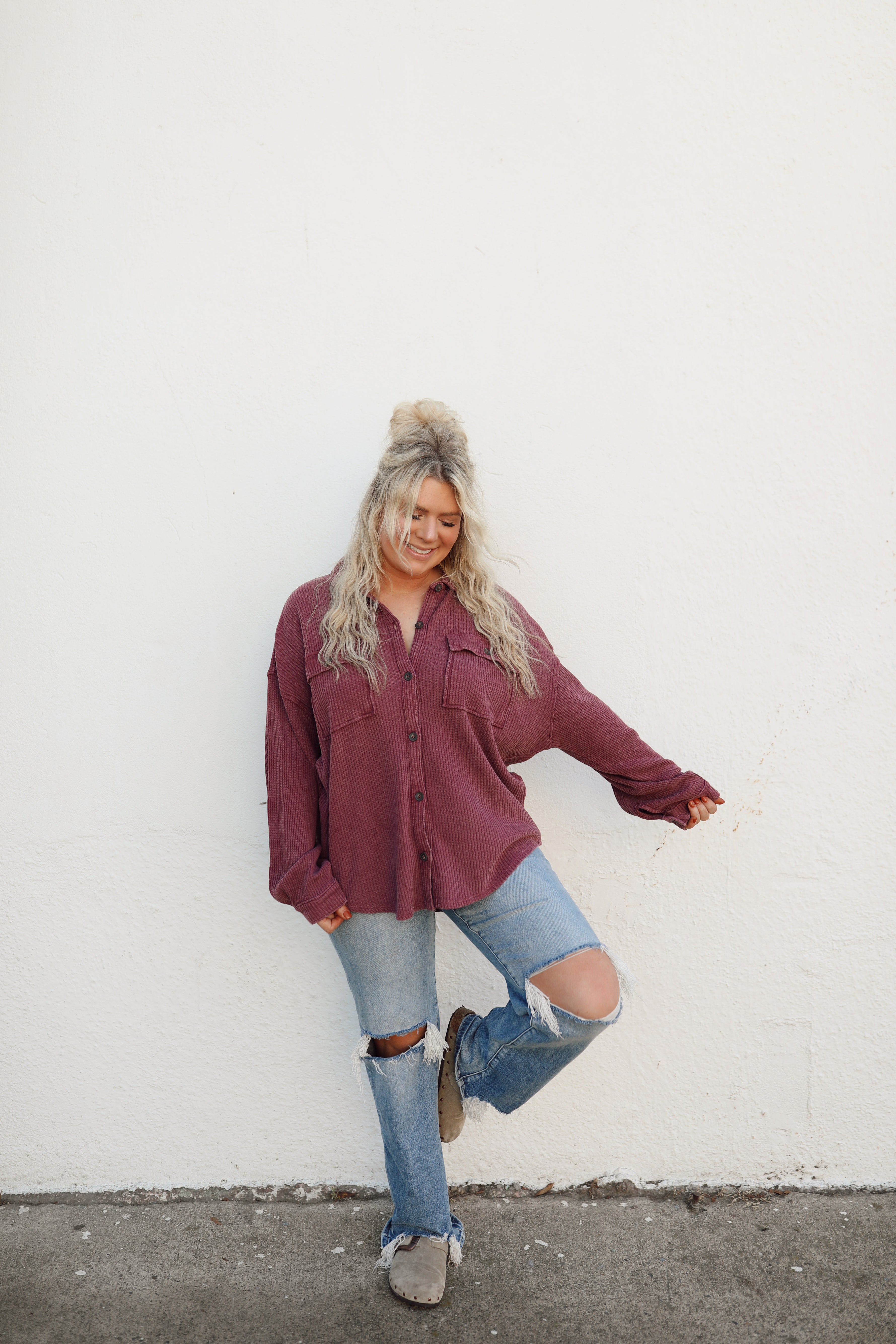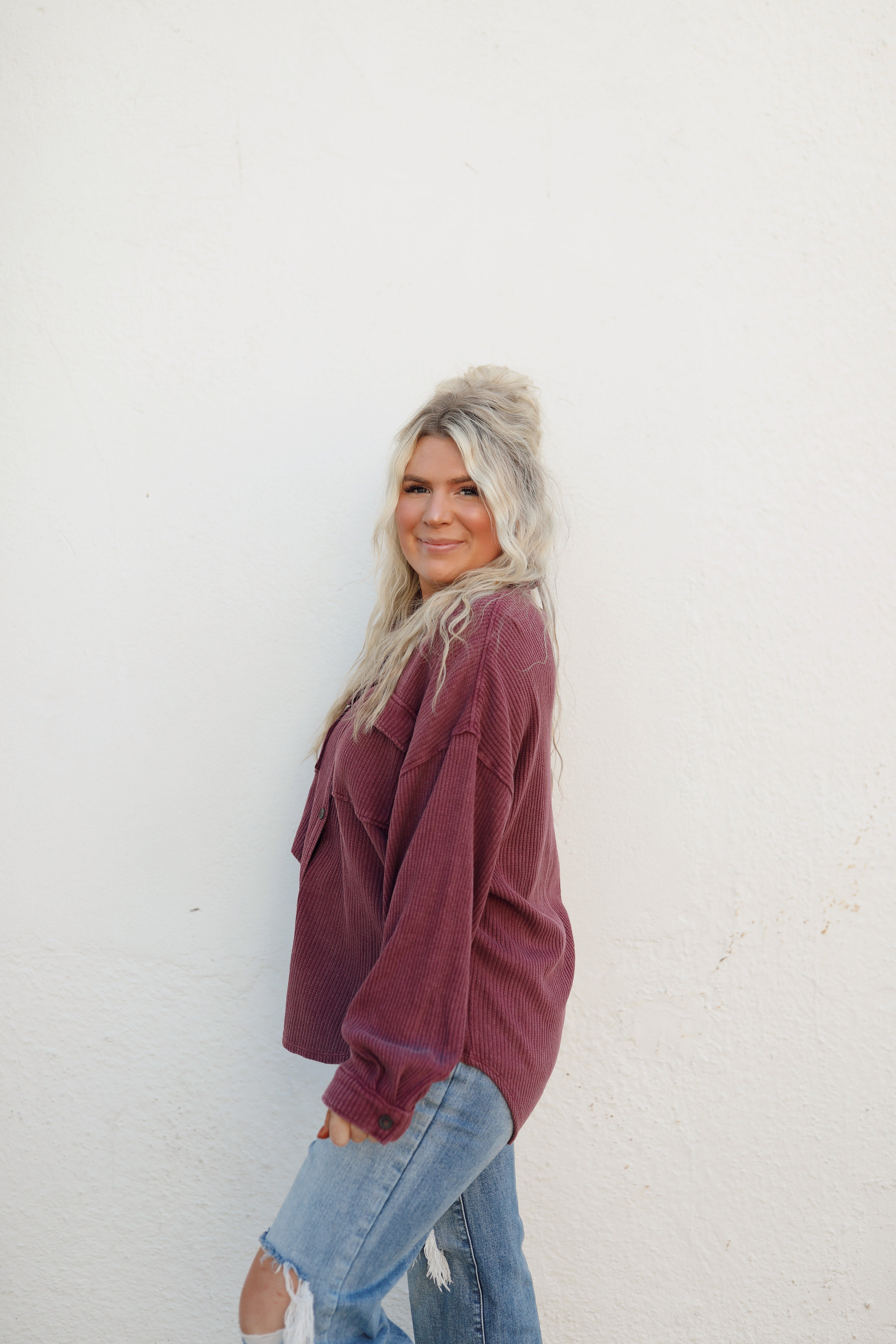 Rylin Waffle Shacket - Dark Cherry