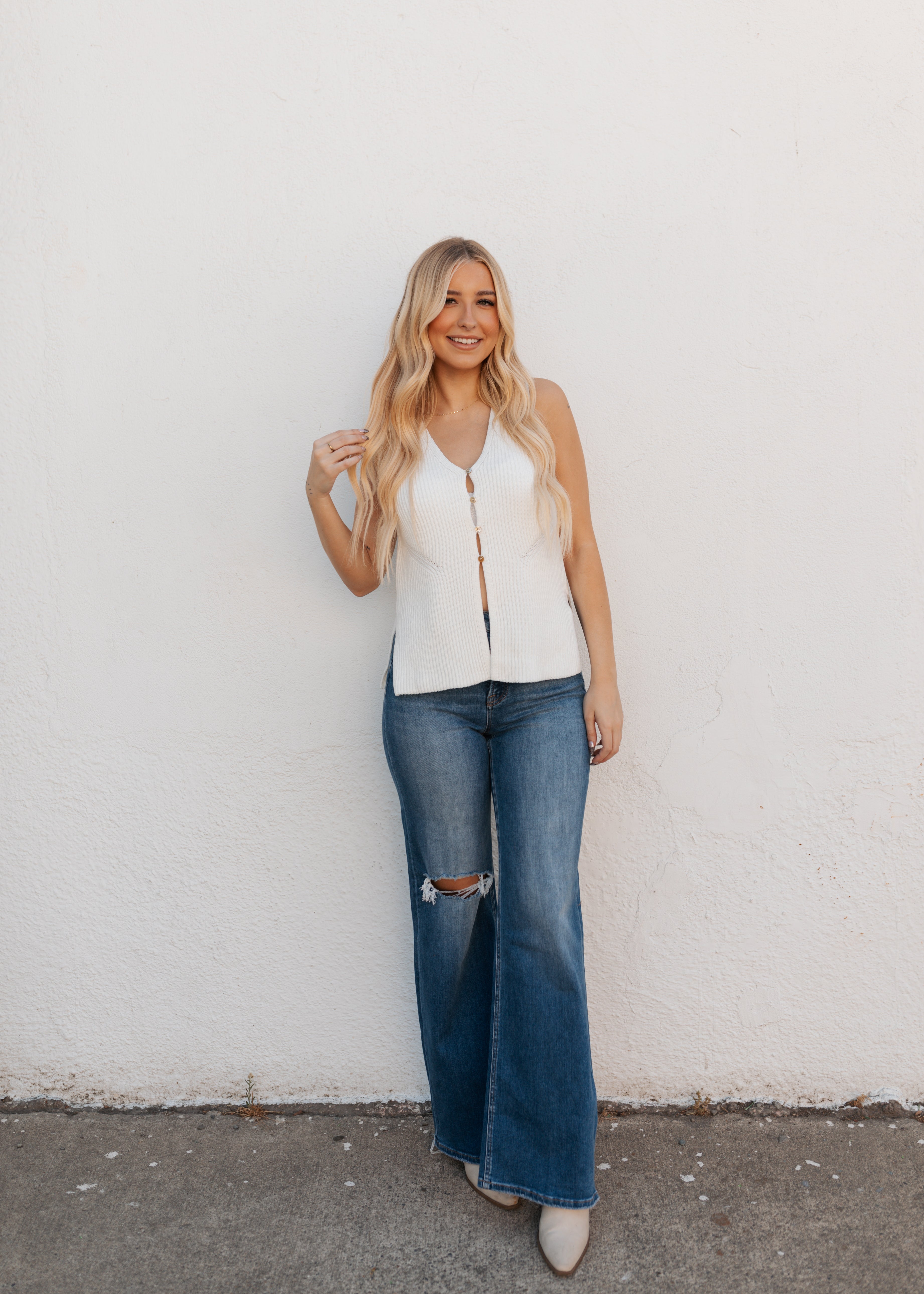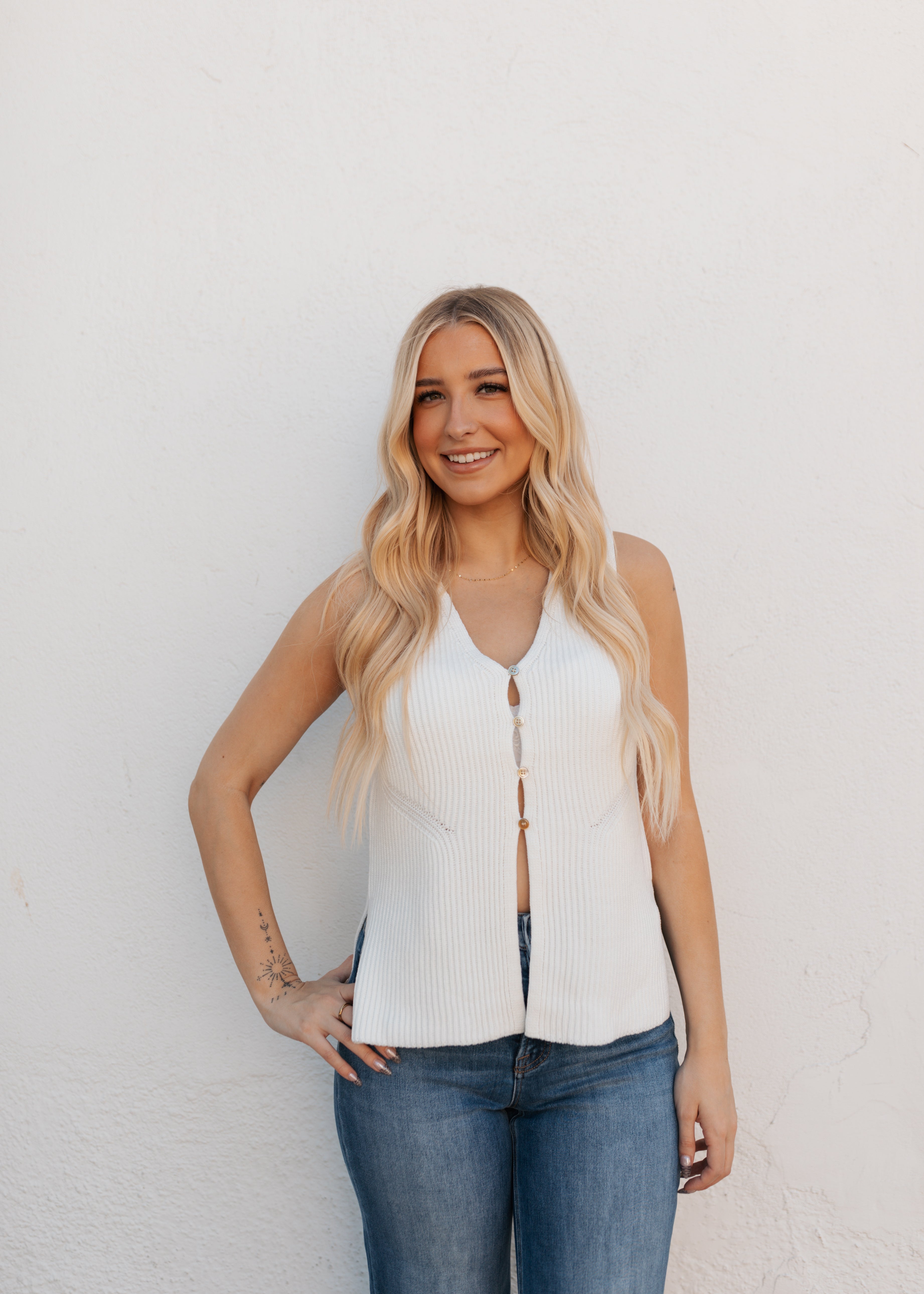 Sweater top with front button closure detail