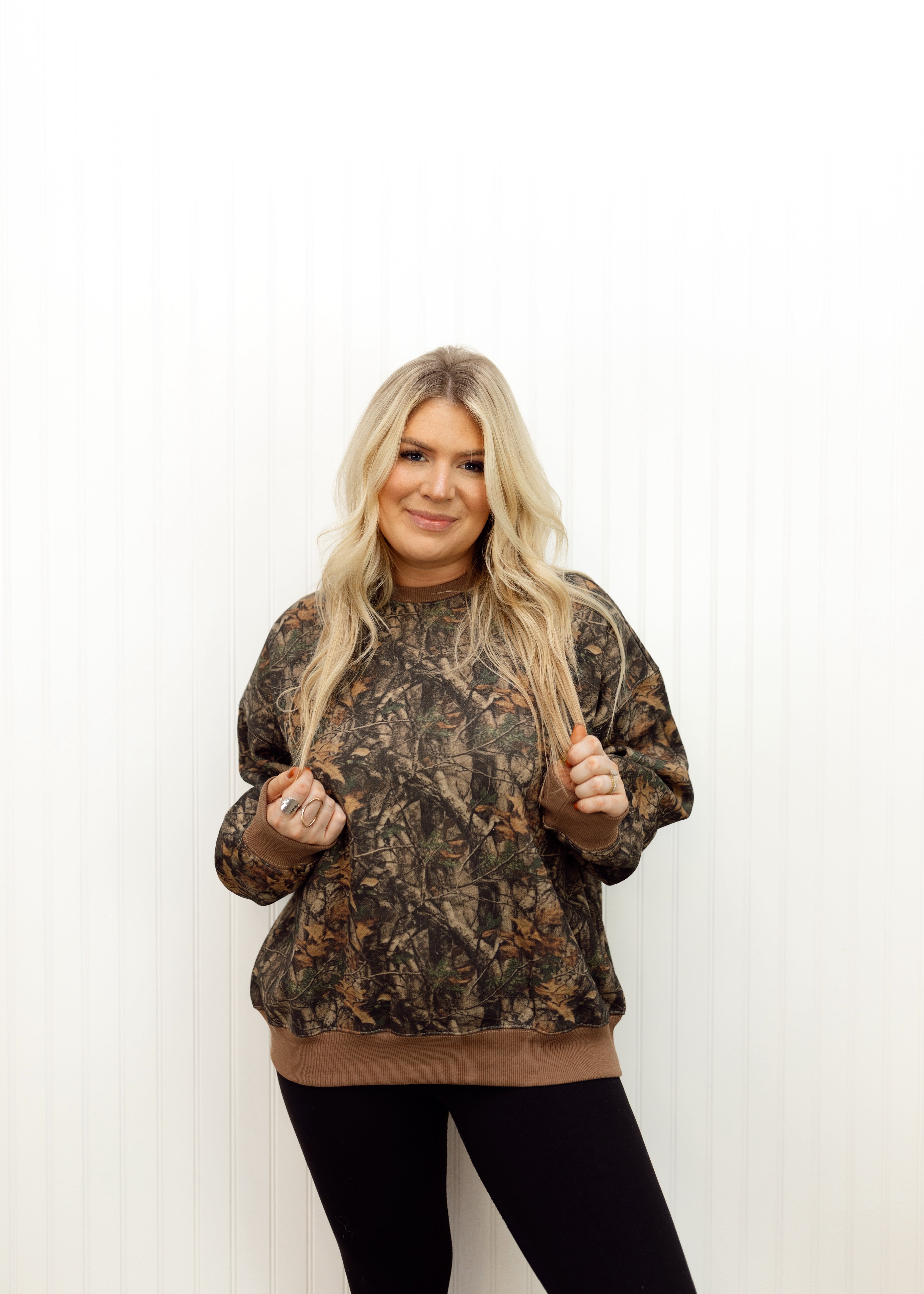 Lauren is in a medium; relaxed fit