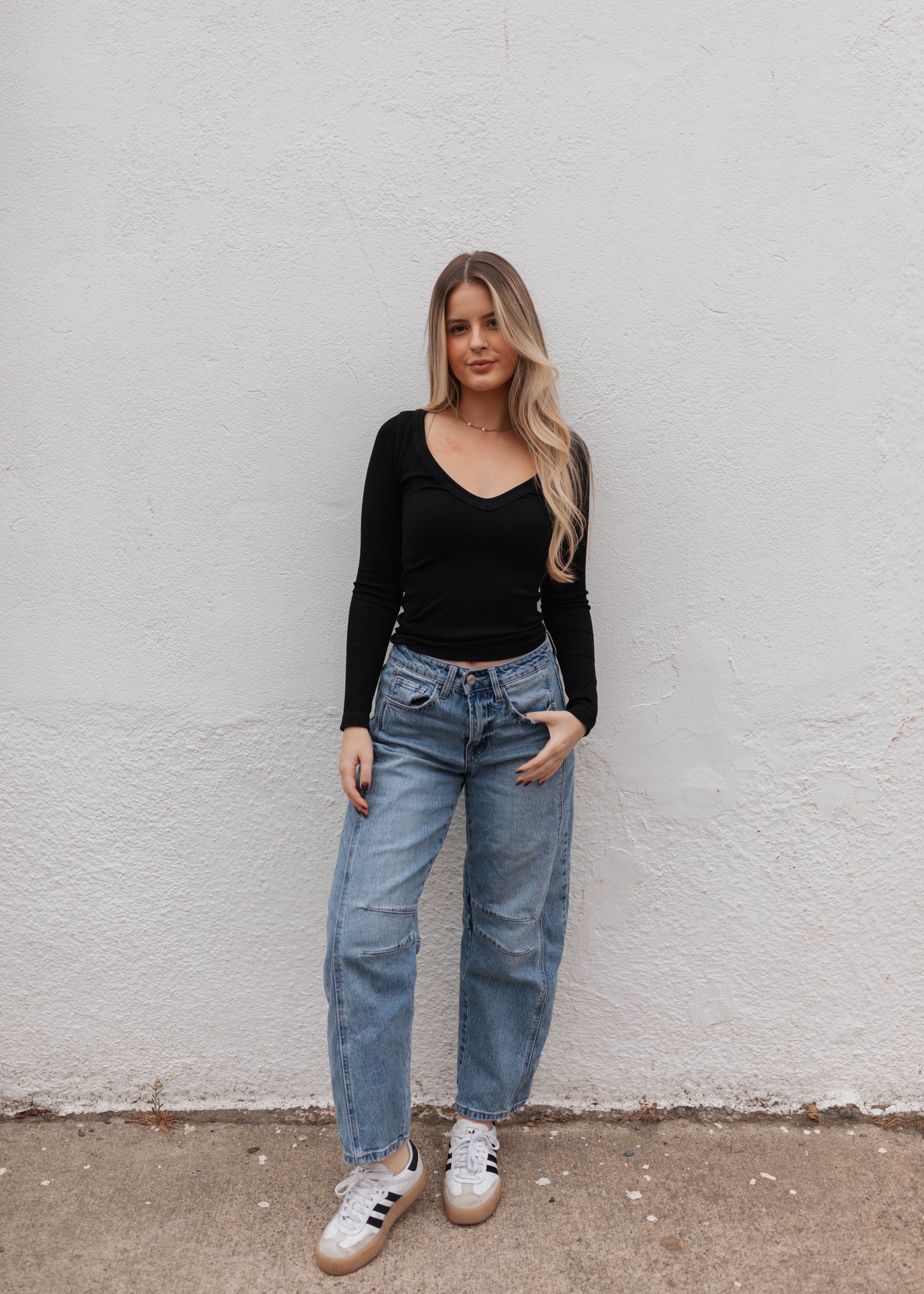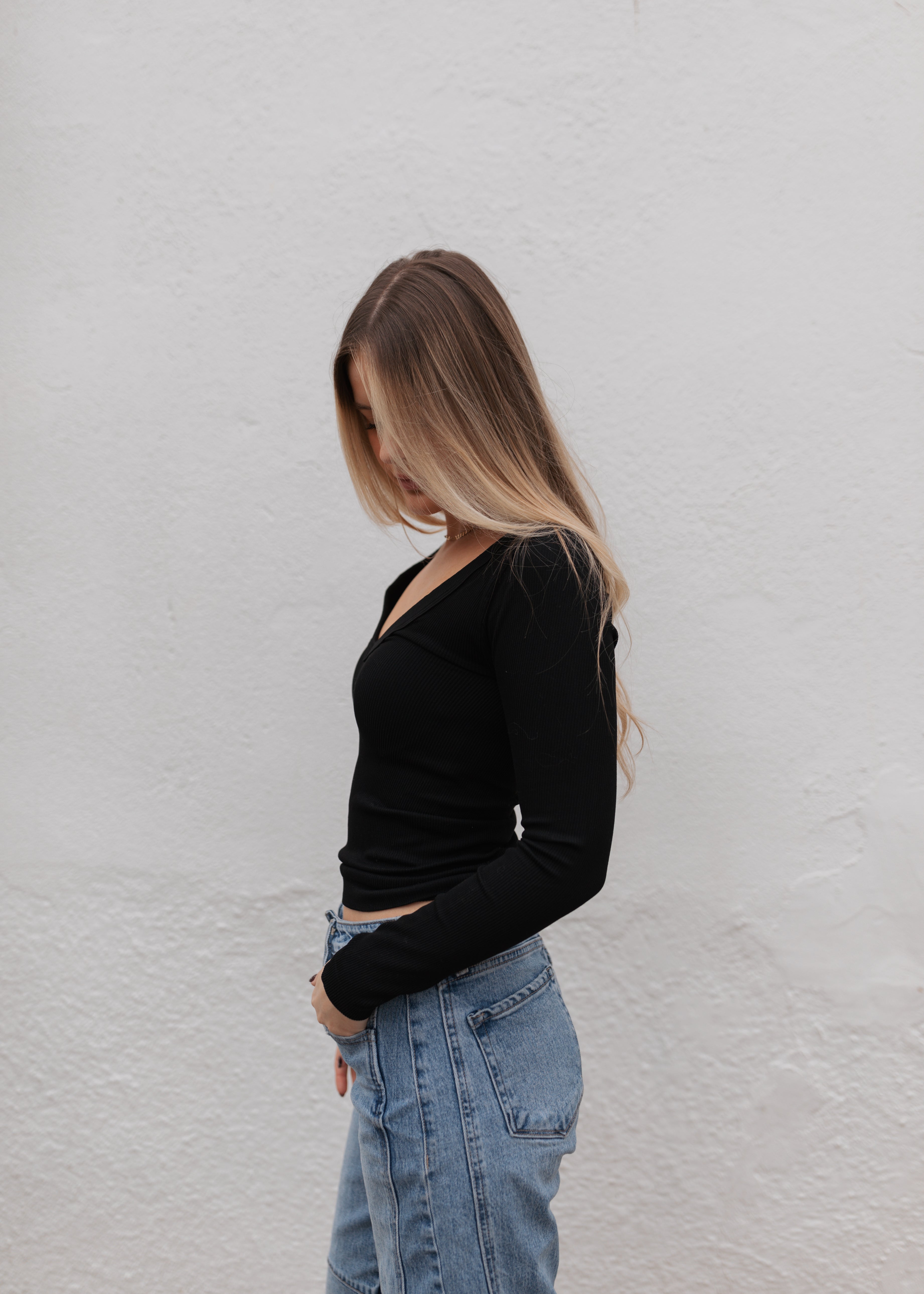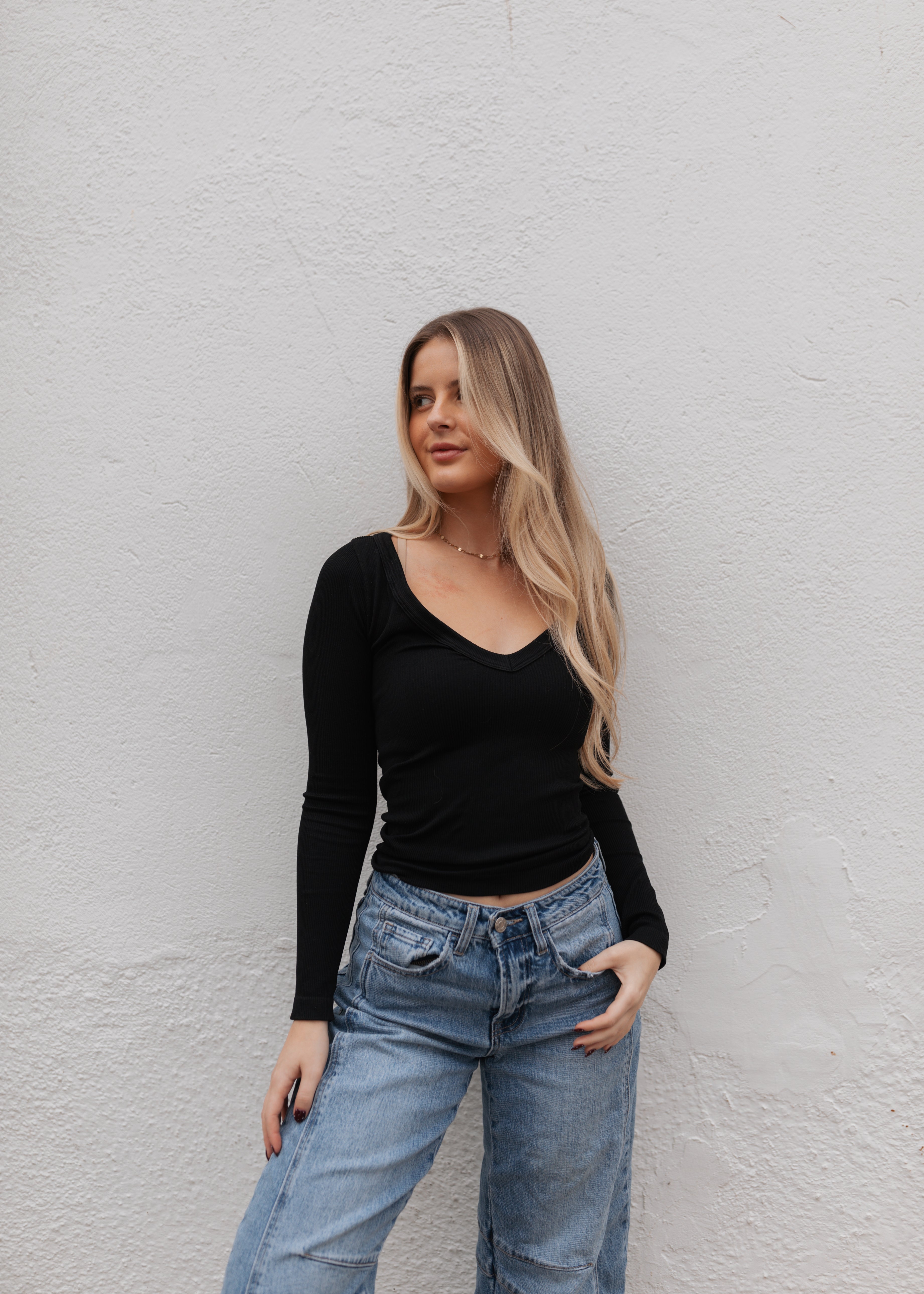 Basic Long Sleeve Ribbed Top - Black
