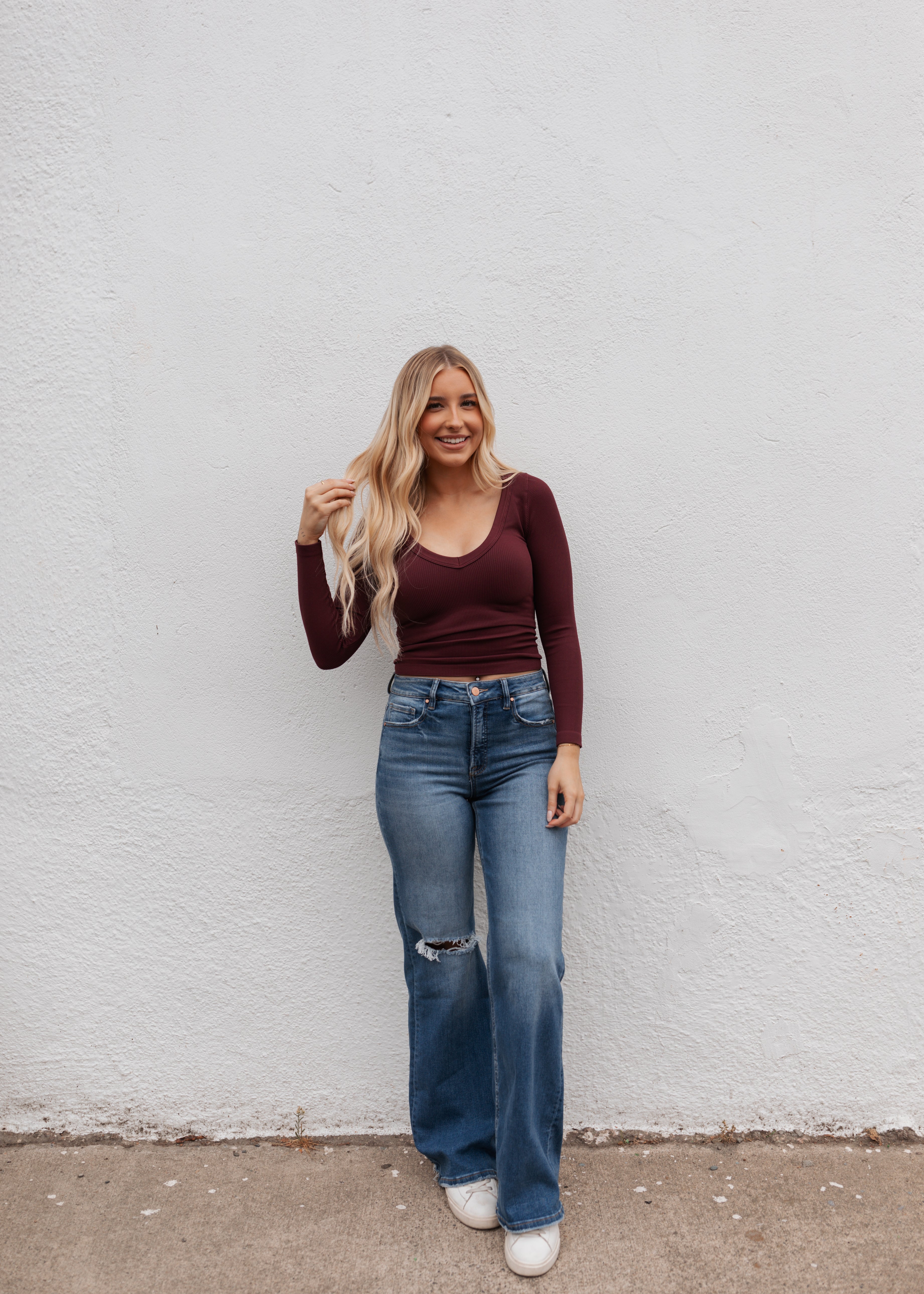 Basic Long Sleeve Ribbed Top - Fig