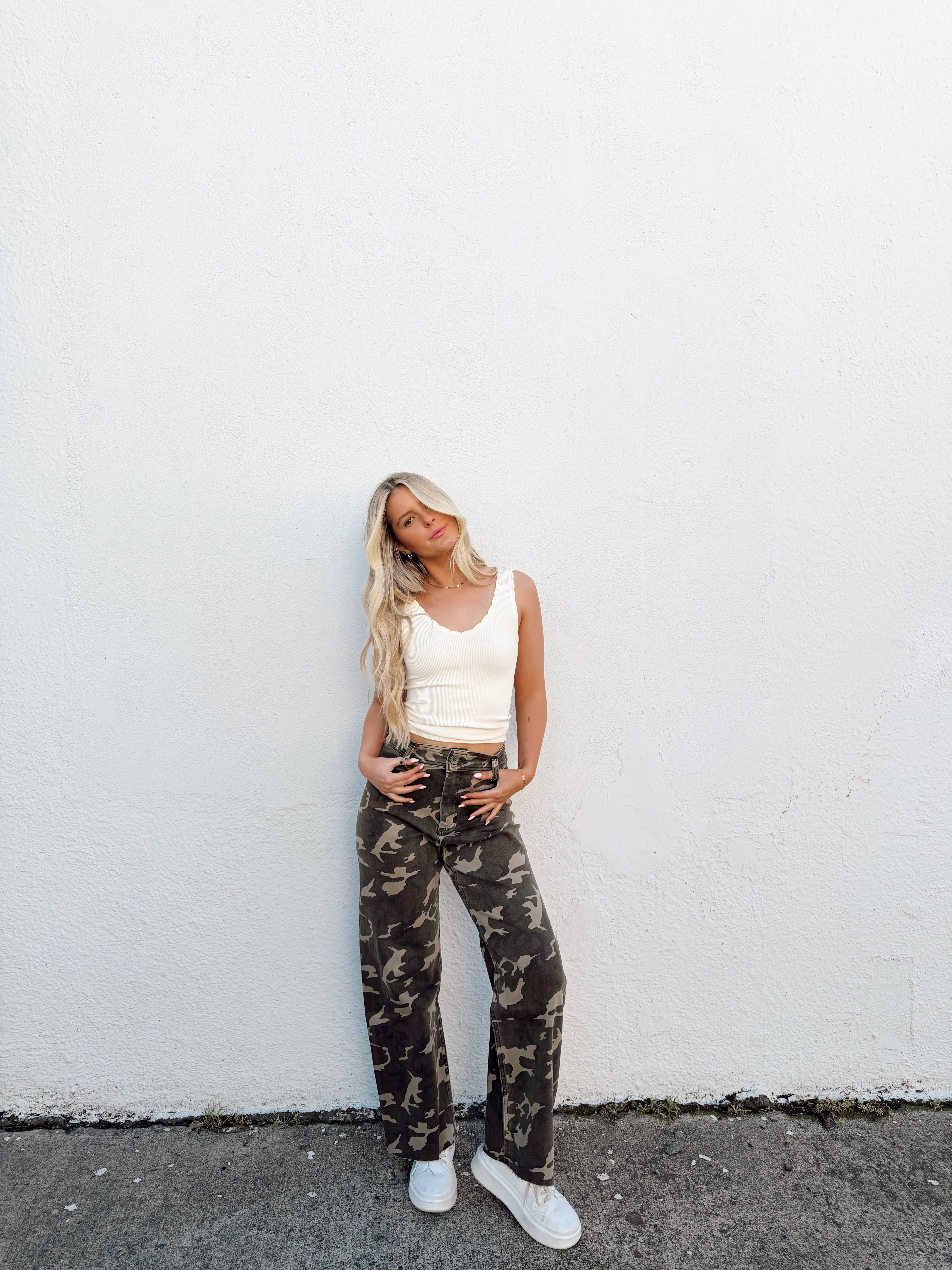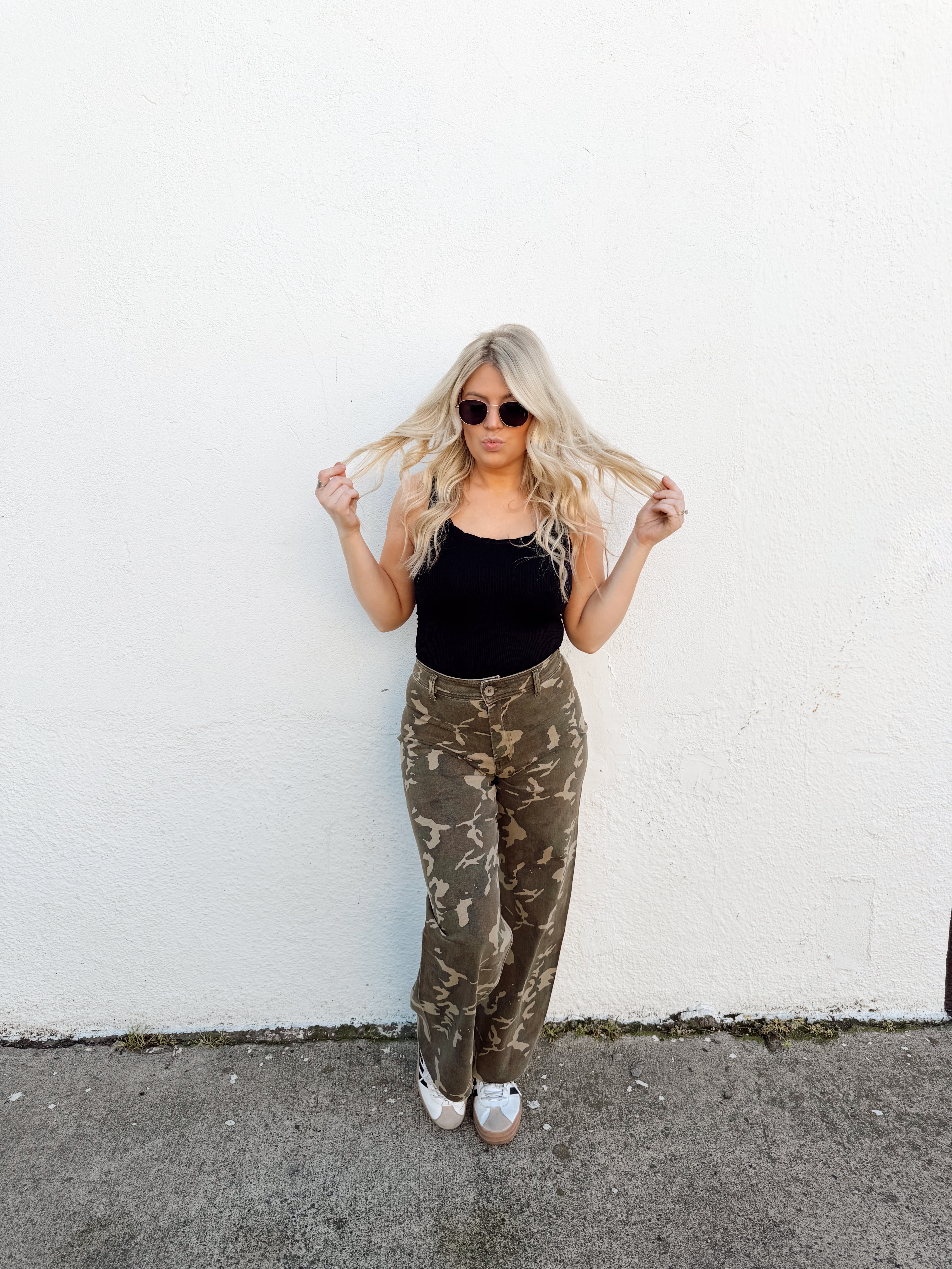 Abbie (white shirt) is in a small, Lauren (black shirt) is in a medium; TTS with stretch