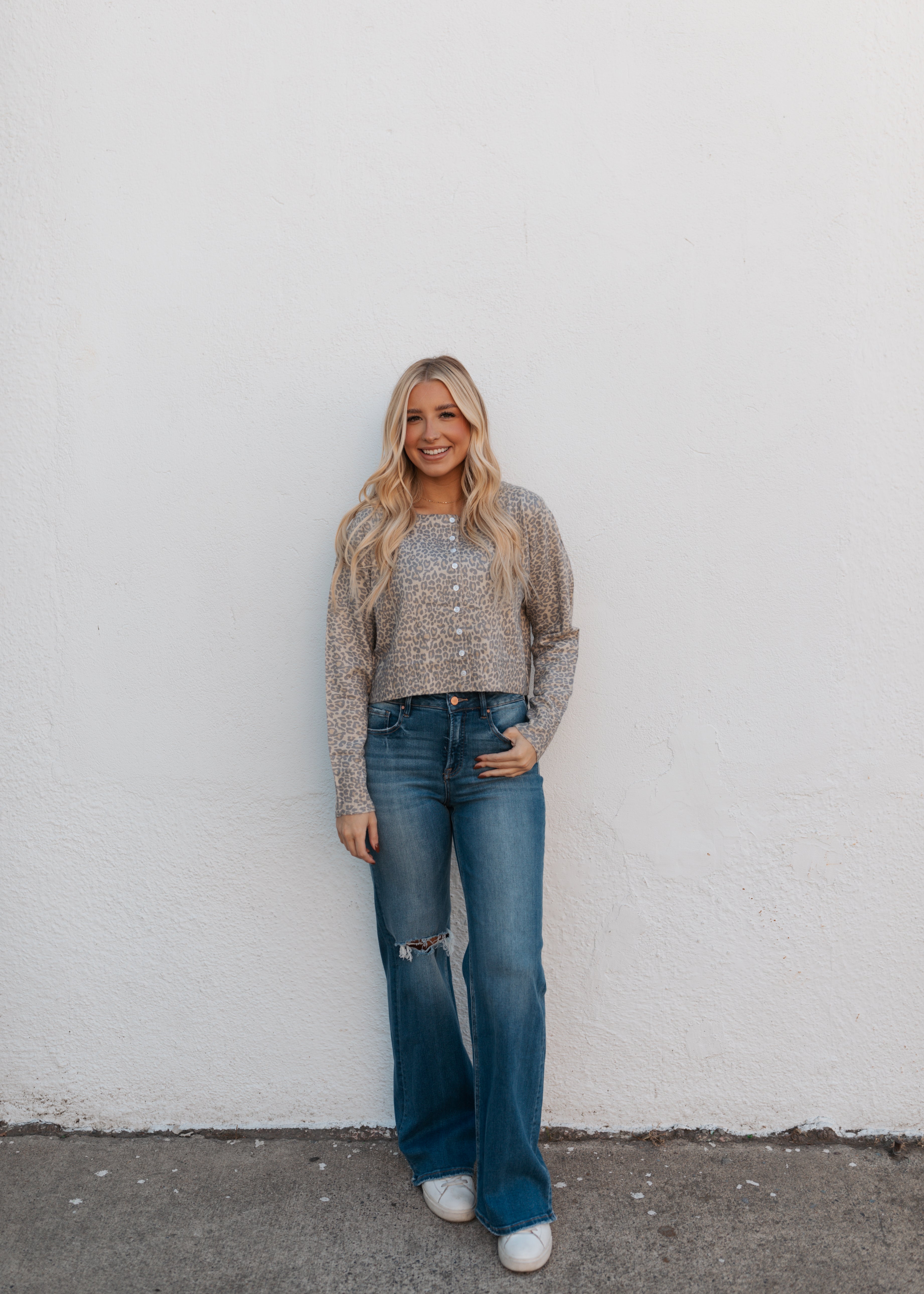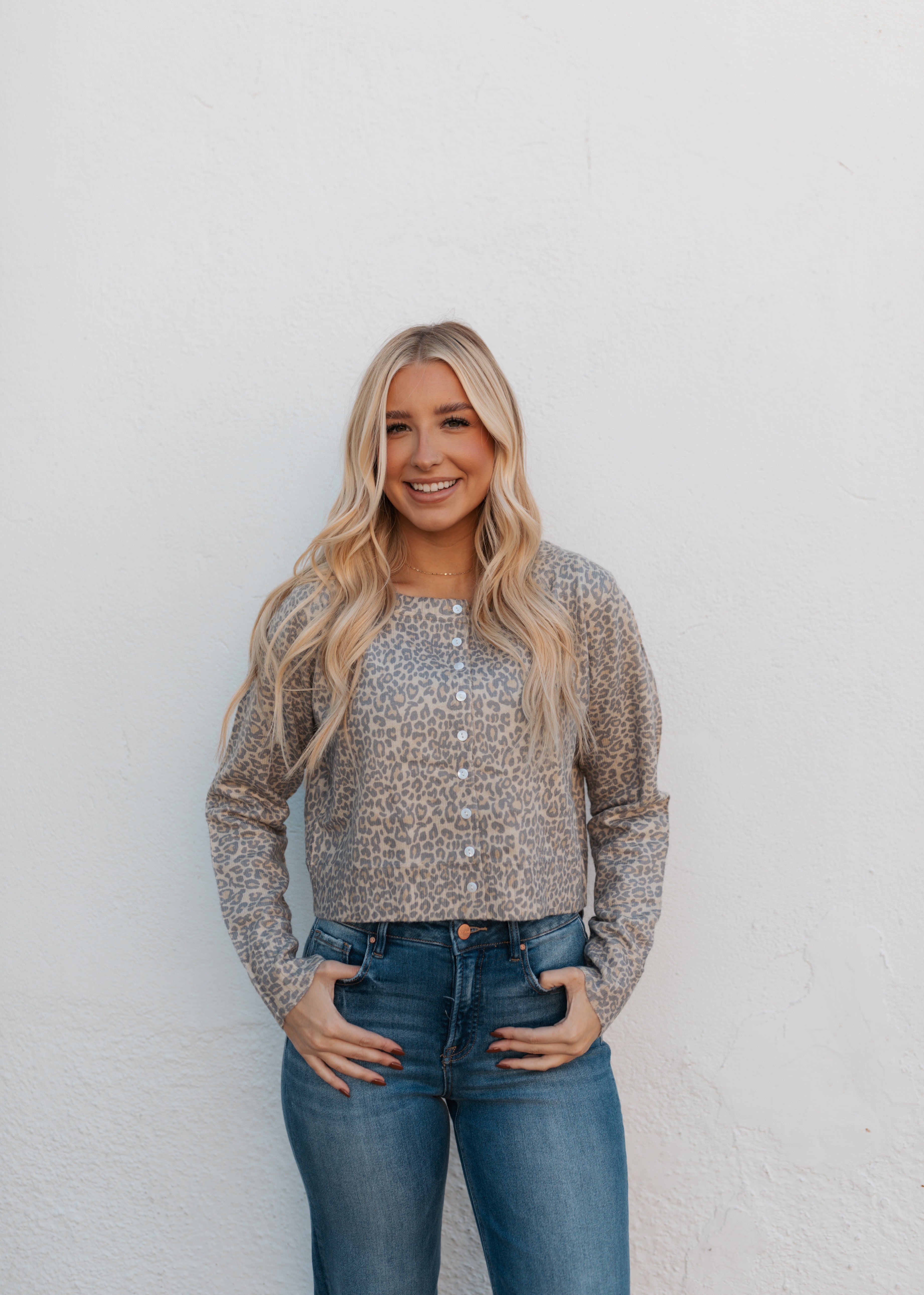 Two Tone Leopard Vintage Print Button Up Cardigan