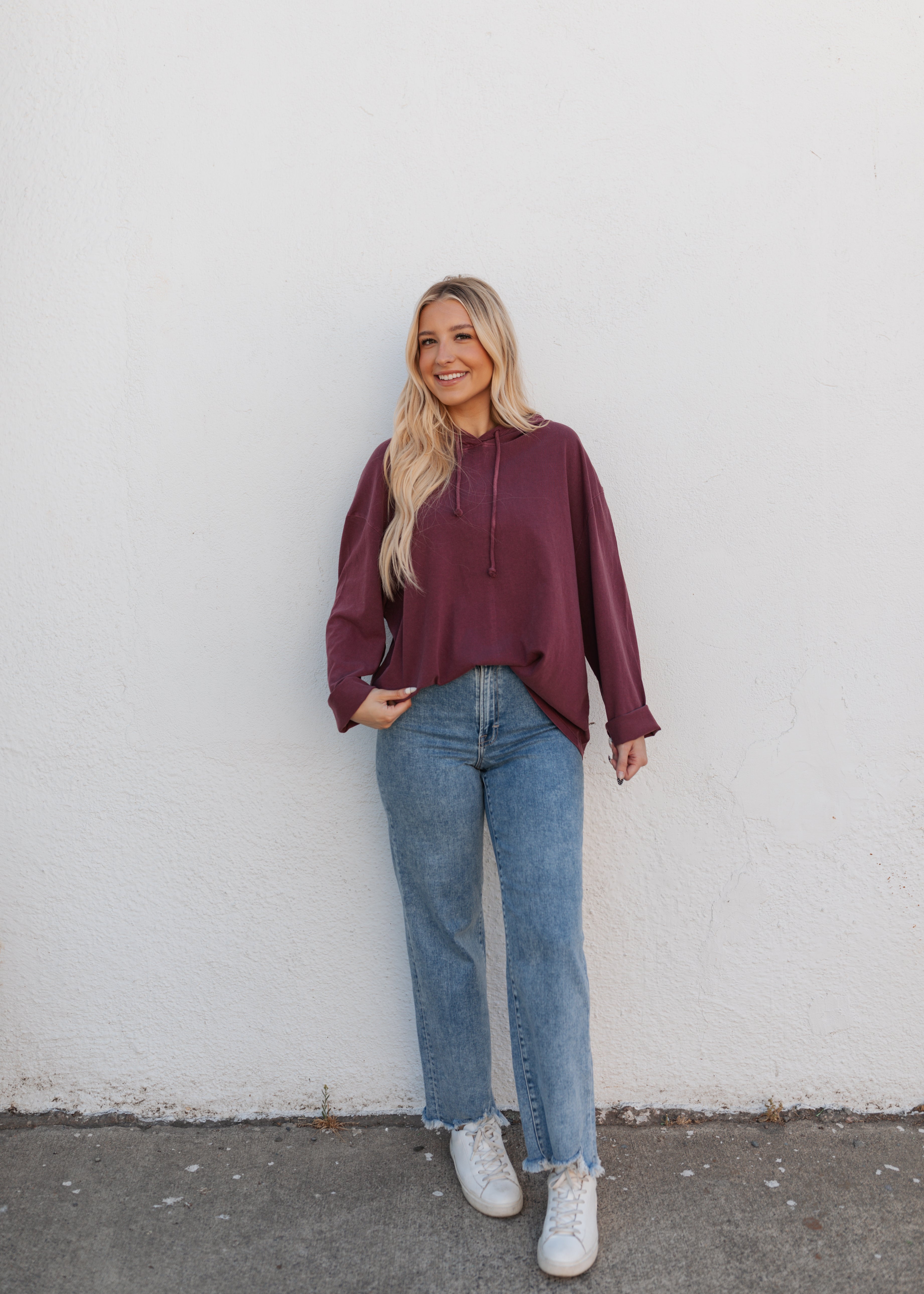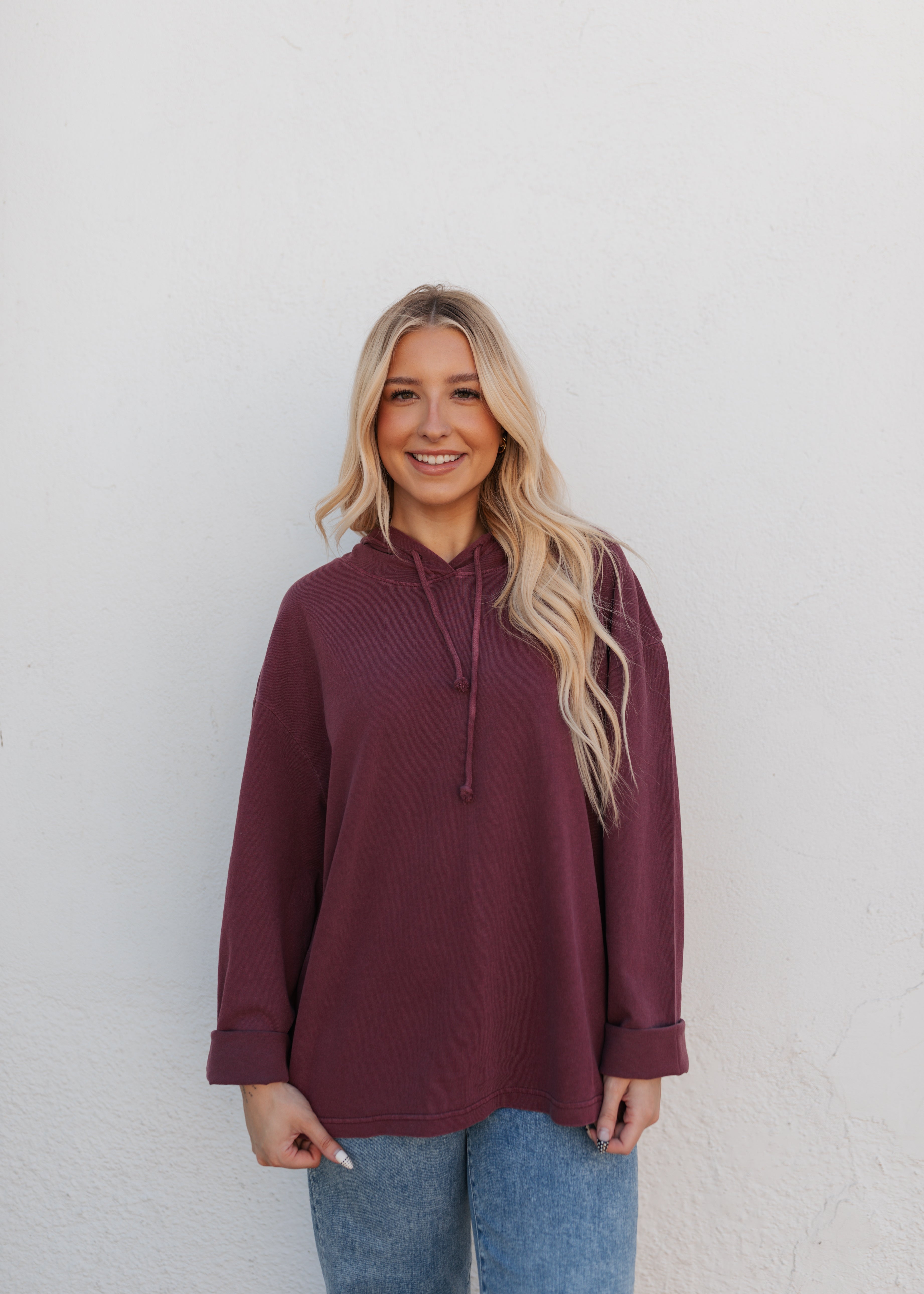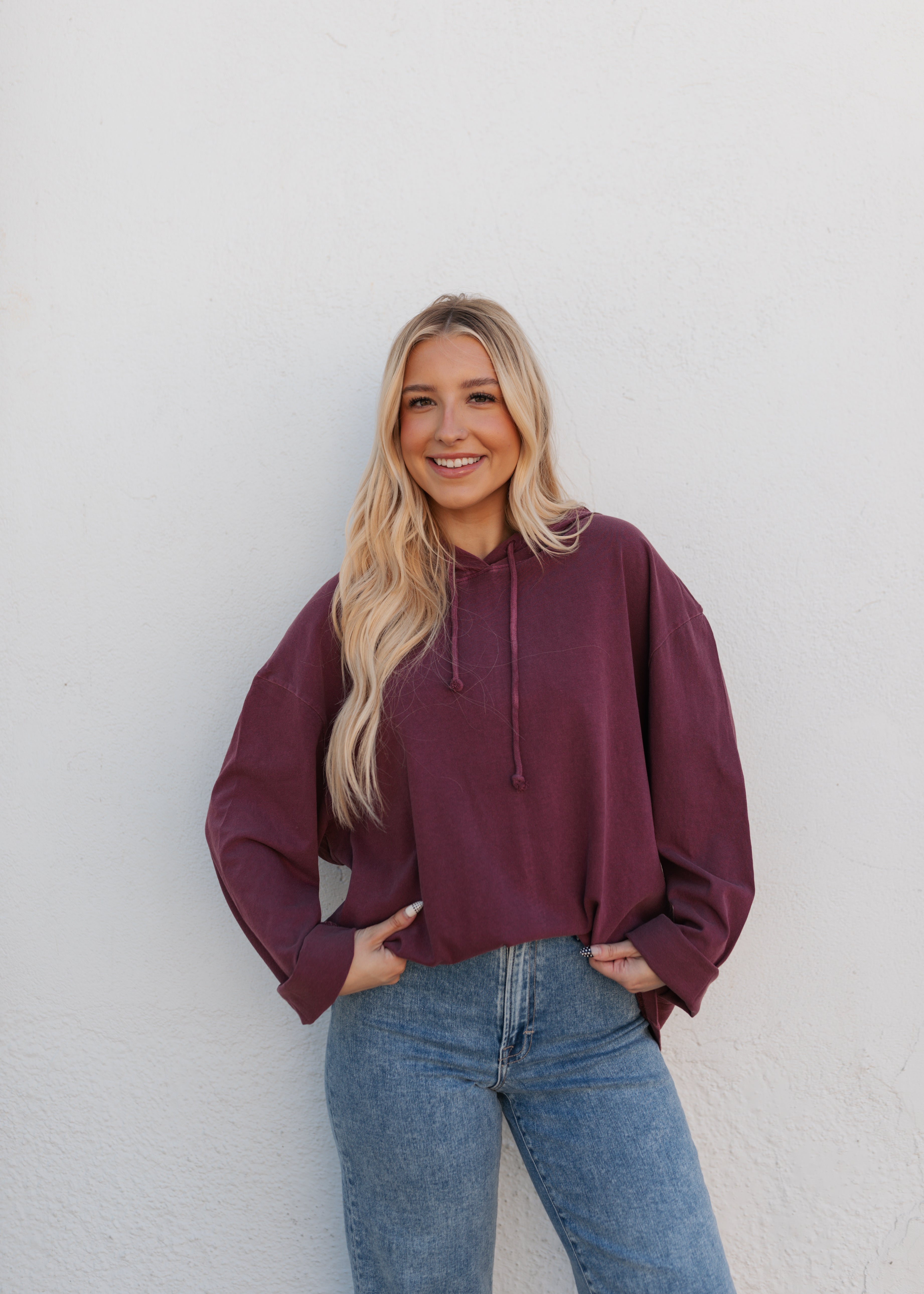 Oversized crew neck long sleeve tee with a hood