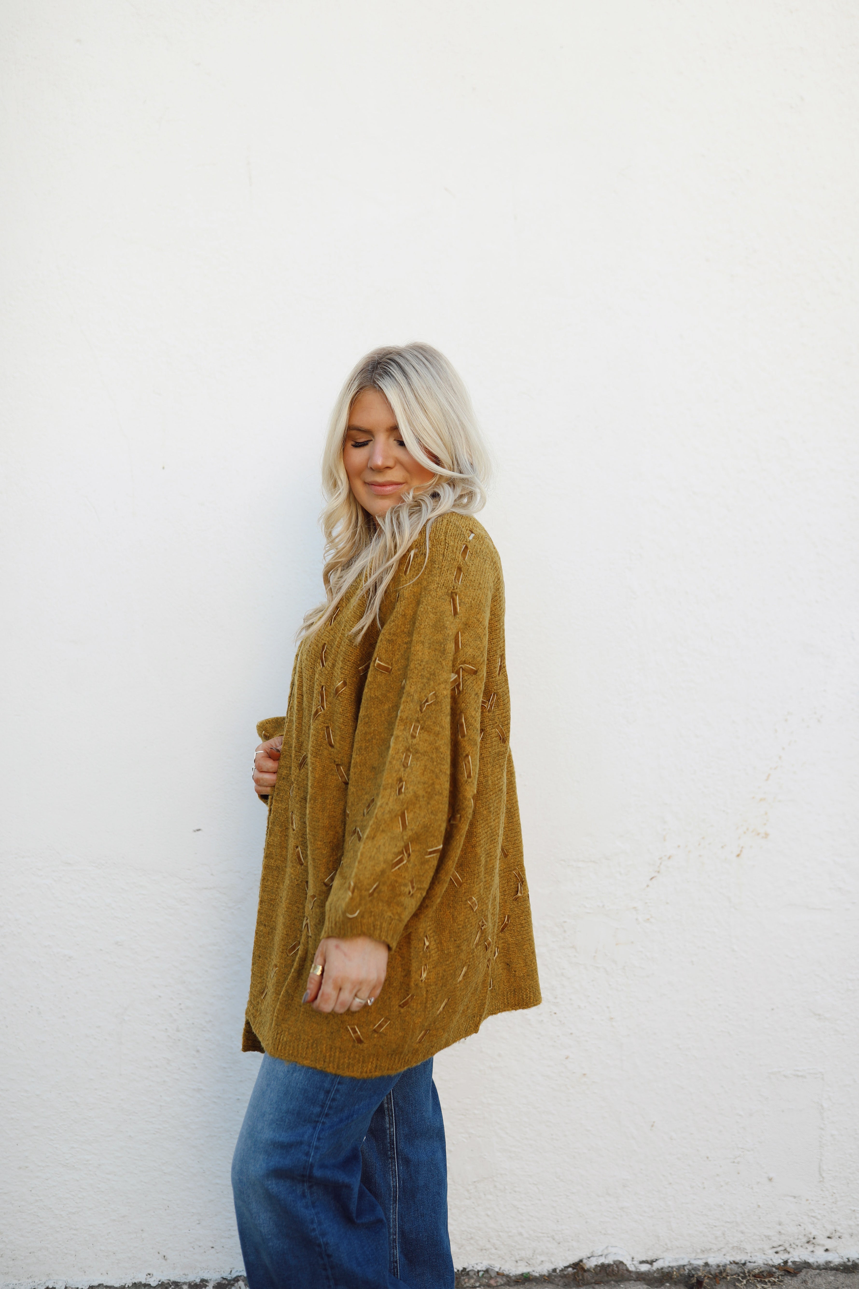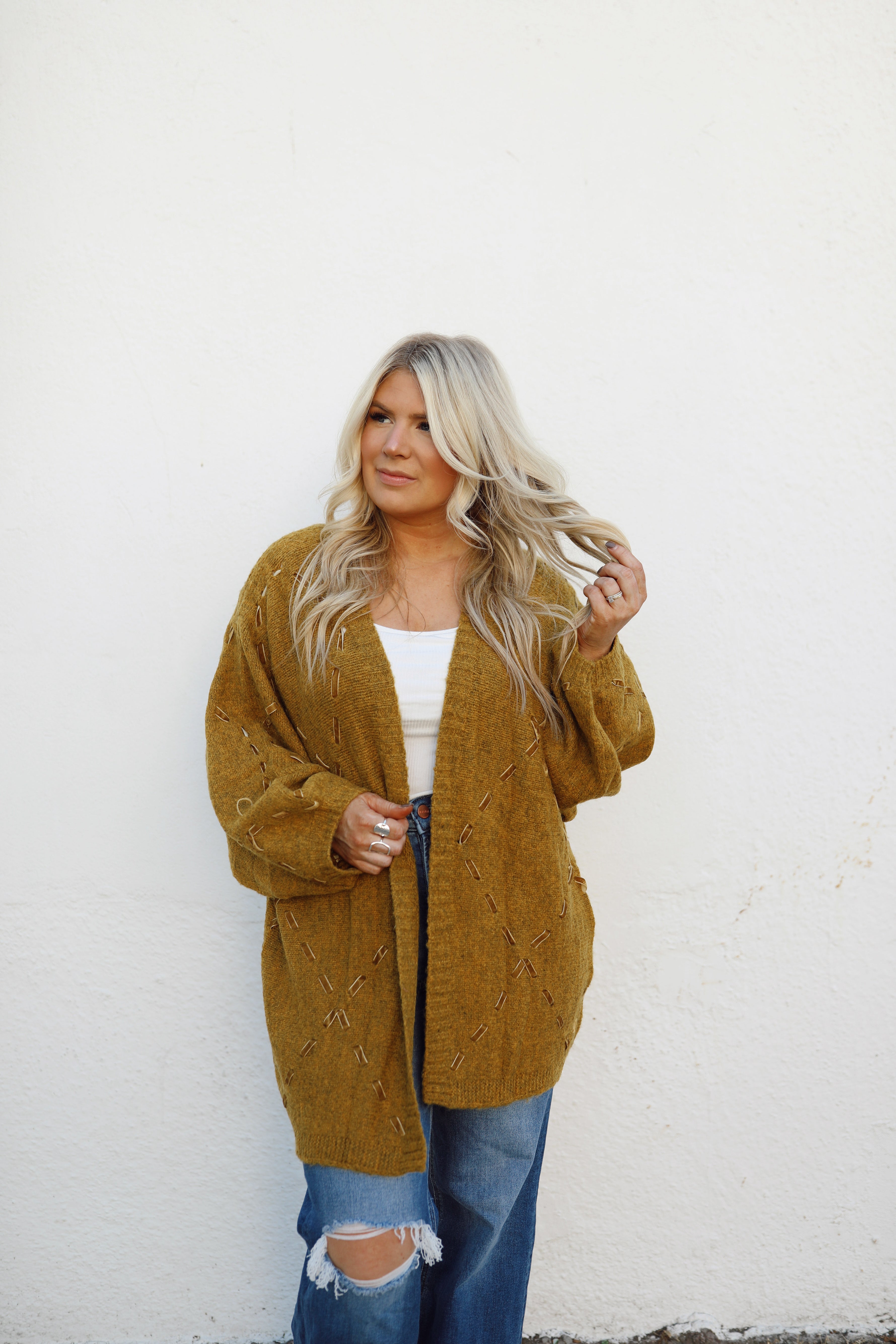 Color: Mustard -Cozy Knit Overside Cardigan with Diamond Pattern Detail