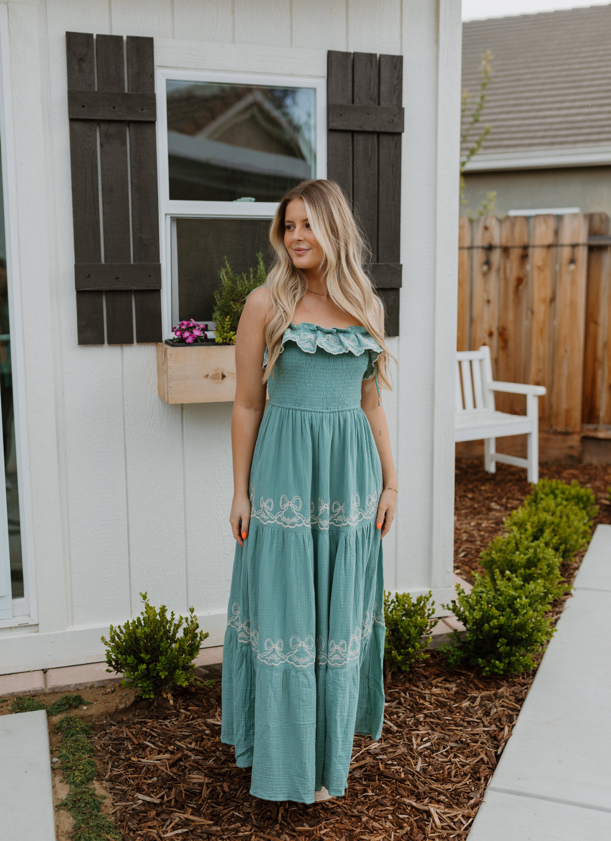 Embroidered tiered midi dress